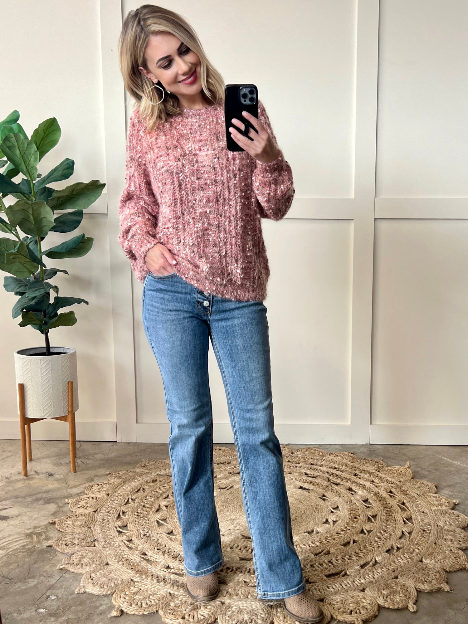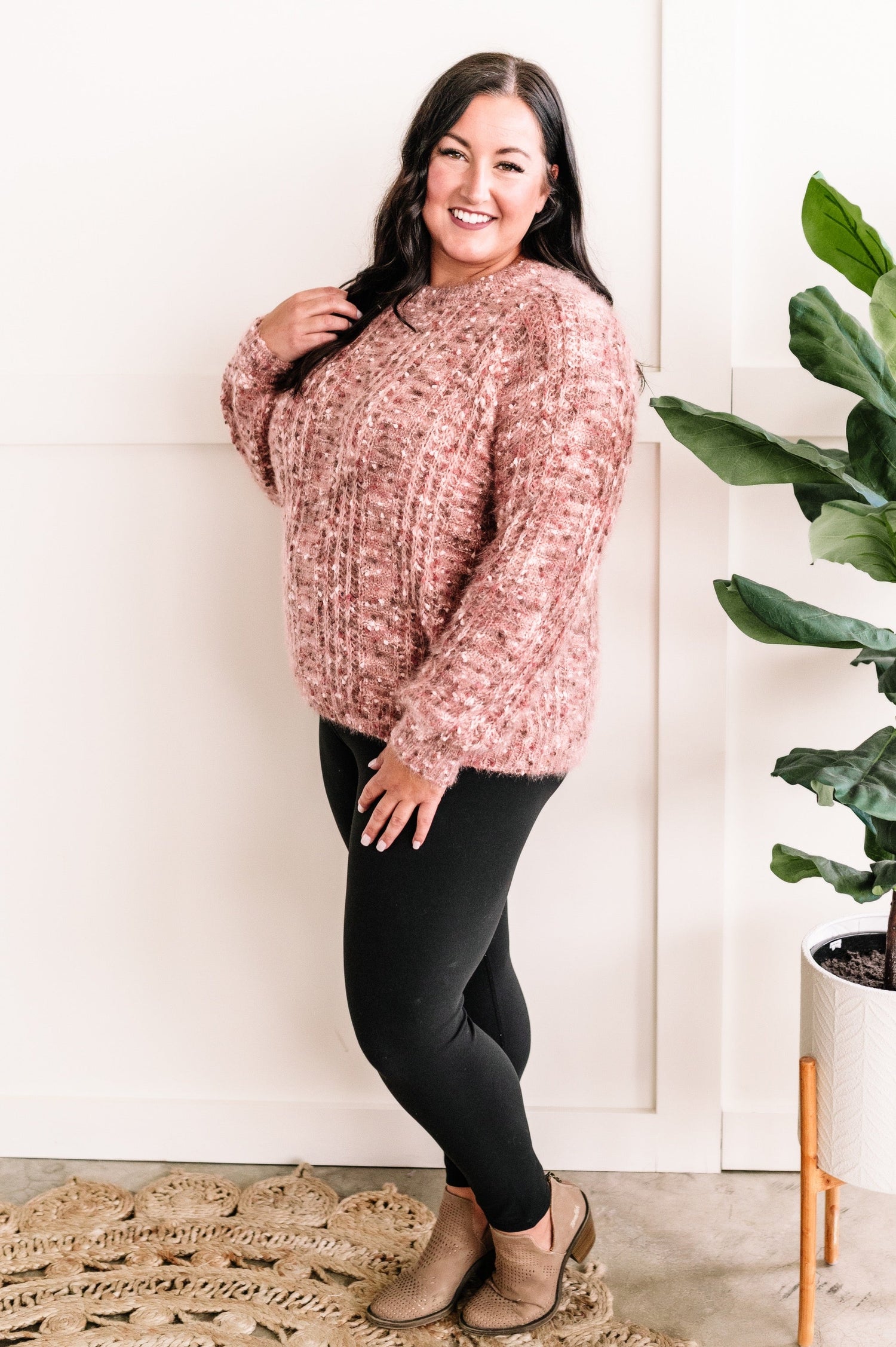 Cozy Factor Sweater In Dusty Mauve & Cranberry