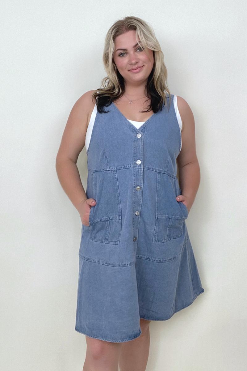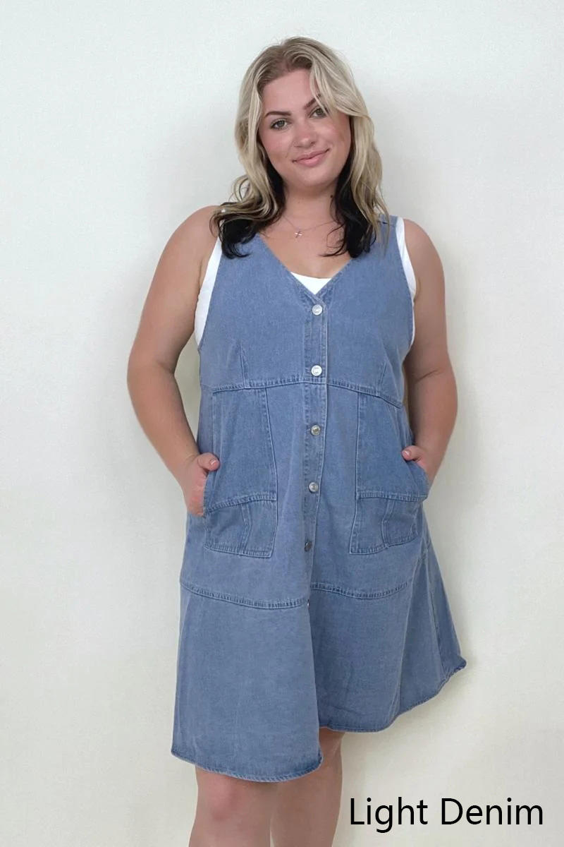 Davi & Dani Button Front Adjustable Strap Denim Dress