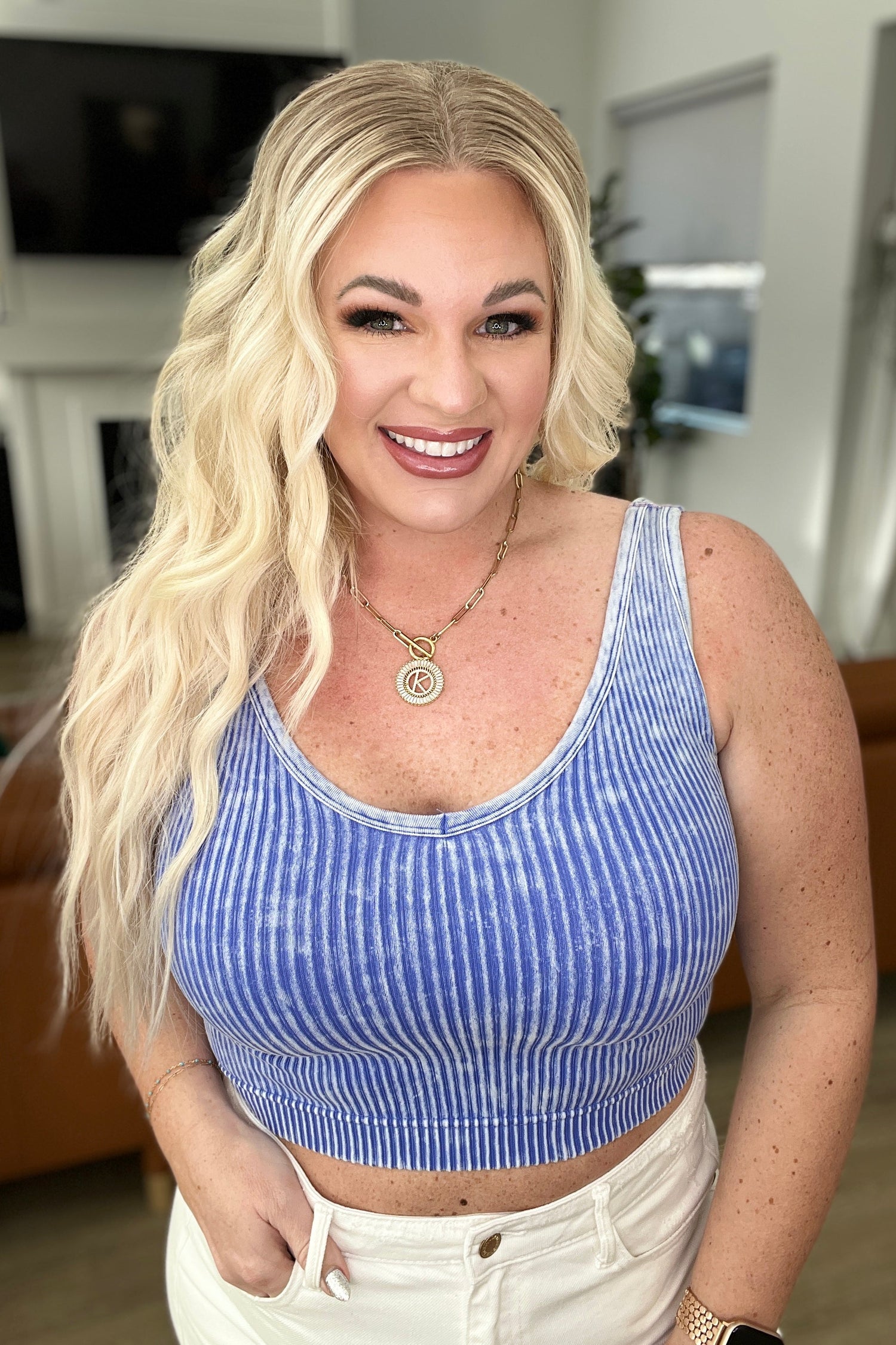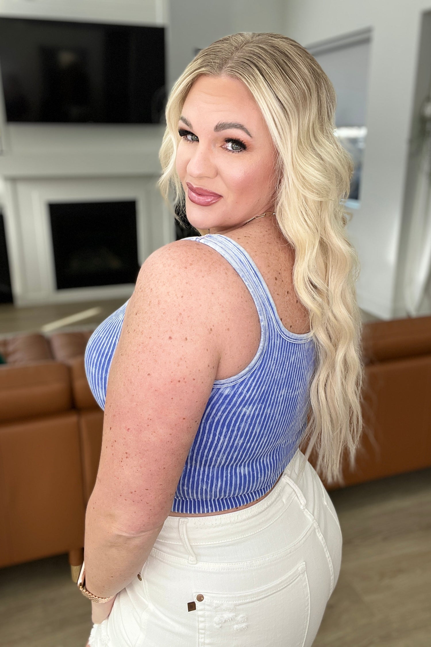 Effortless Reversible Mineral Wash Ribbed Tank in Light Indigo