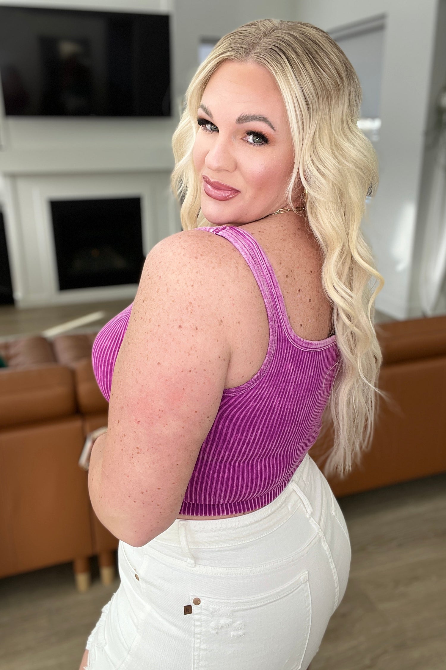 Effortless Reversible Mineral Wash Ribbed Tank in Light Plum