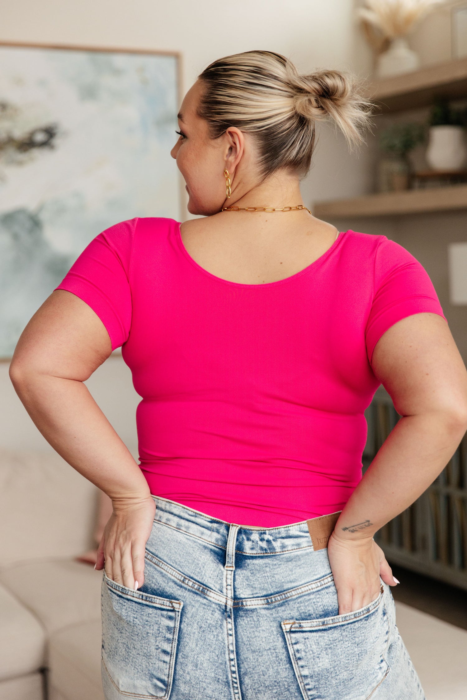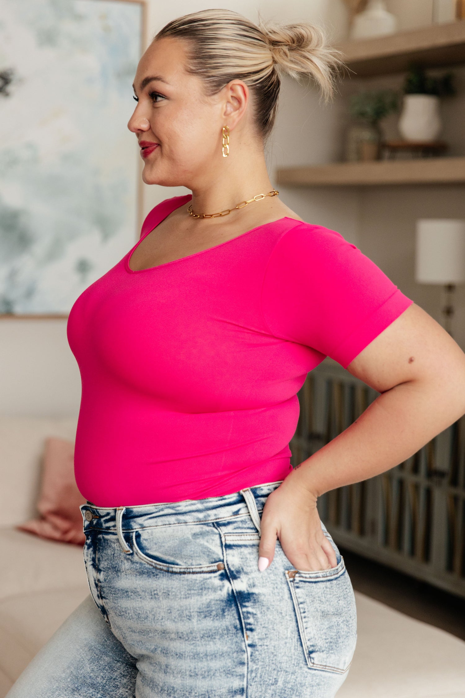 Everyday Scoop Neck Short Sleeve Top in Fuchsia