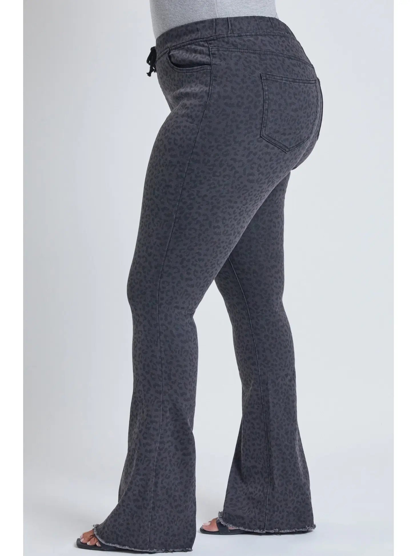 The signature junior's plus size jogger now comes in flare! Featuring five functional pockets, draw string tie, and elastic waistband. measurement (based on size 2X) - inseam: 33” - rise (to top edge of band): 12” - leg opening (relaxed): 23” composition: - 73% cotton/ 25% polyester/ 2% spandex • machine wash cold. • model is wearing a size 1X.