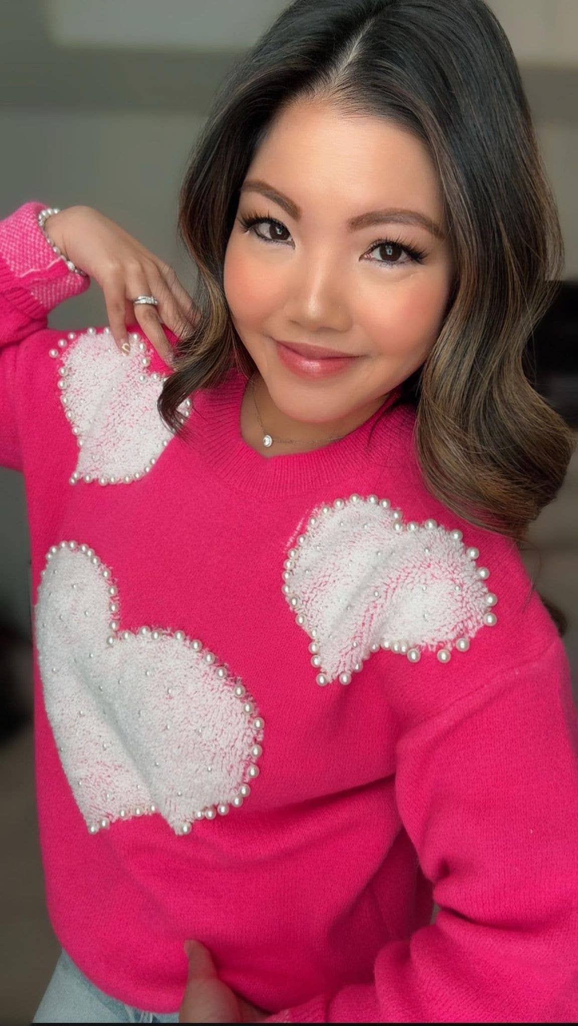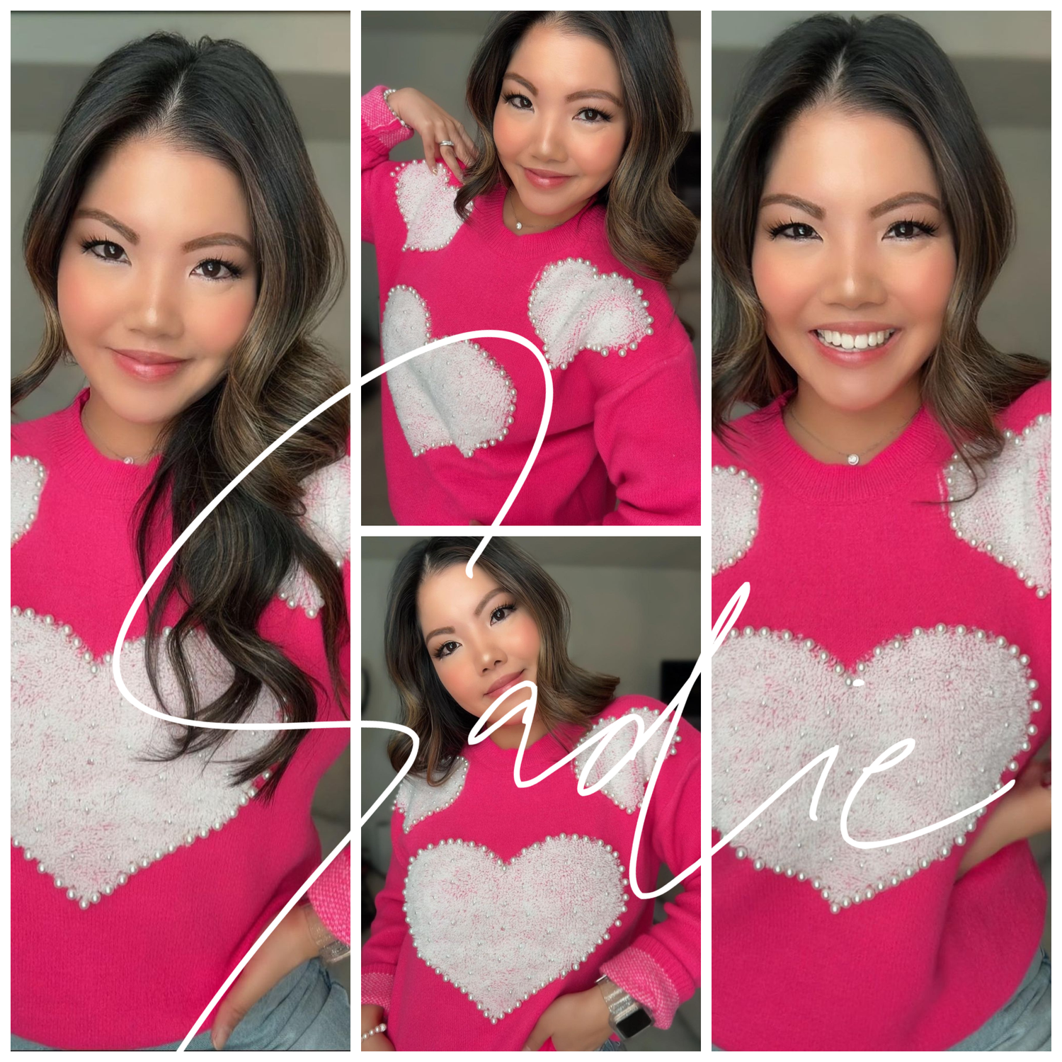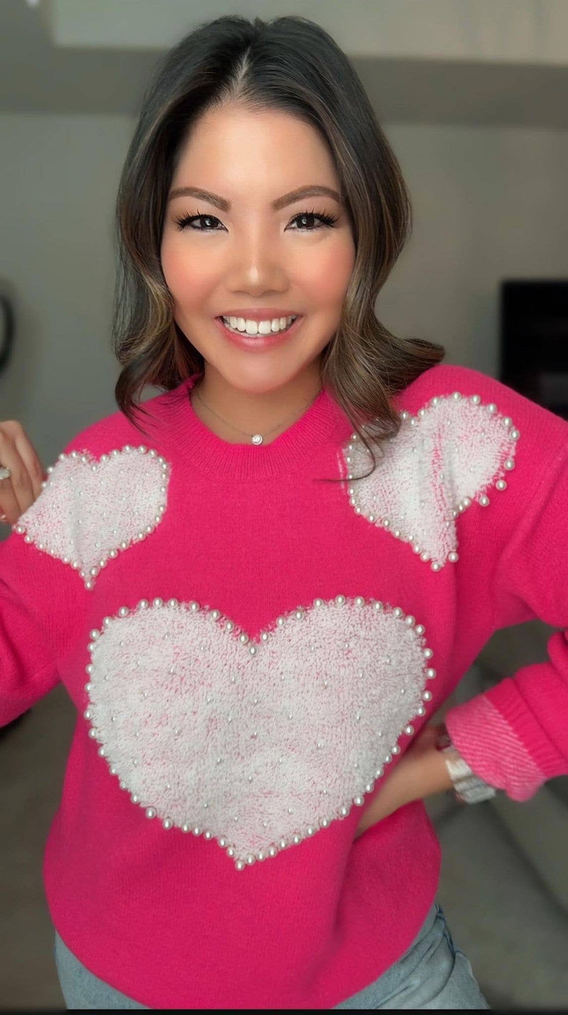 JadyK - Sadie Neon Pearl Sherpa Heart Sweater