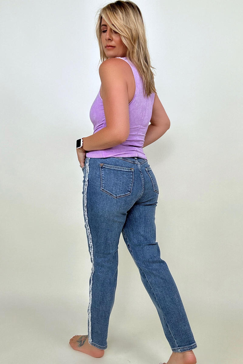 Judy Blue High Waist Side Fray Slim Fit Jeans
