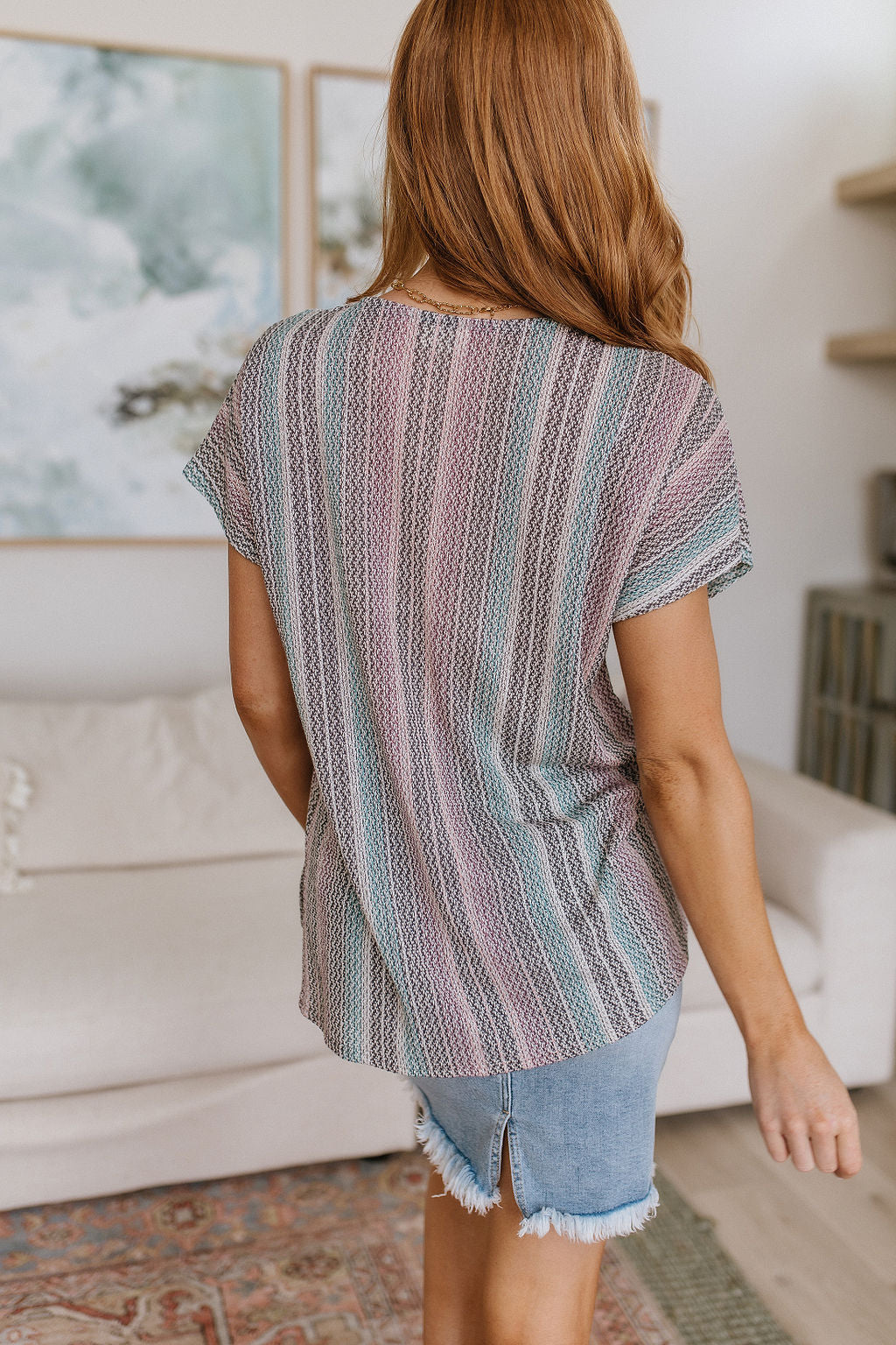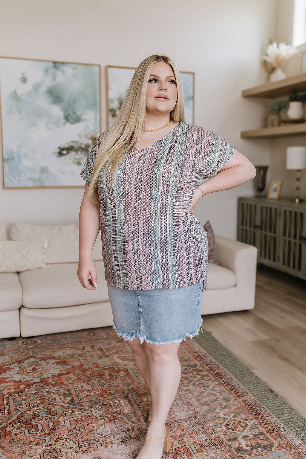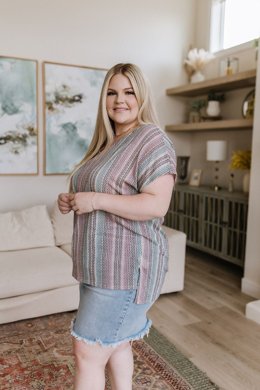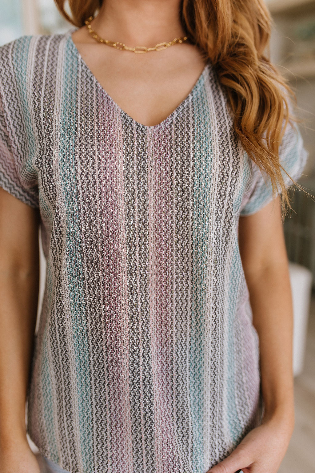 Cruise through your day with effortless, stylish ease in the Let's Cruise Striped Top. Featuring a lightweight textured knit with an eye-catching variegated multicolored stripe, this top offers a v-neckline, dolman sleeves, beautiful side slits, and a high/low hem that combine for an undeniable chicness.