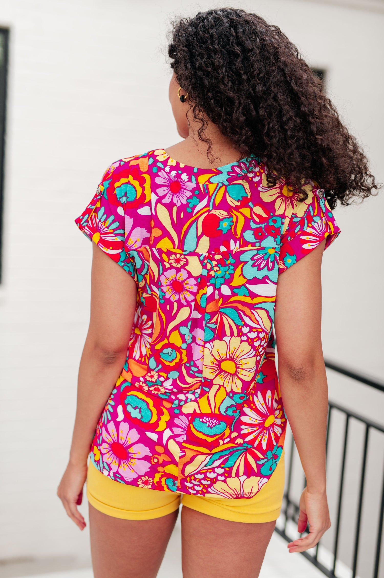 Revamp your wardrobe with the Lizzy Cap Sleeve Top. Crafted from Bulgari fabric, this top boasts a playful Lizzy neckline and rolled sleeves with button tabs for a unique touch. The cap short sleeve and scoop hem bring a hint of flow to this trendy piece. Enjoy both comfort and style with the Lizzy Top.