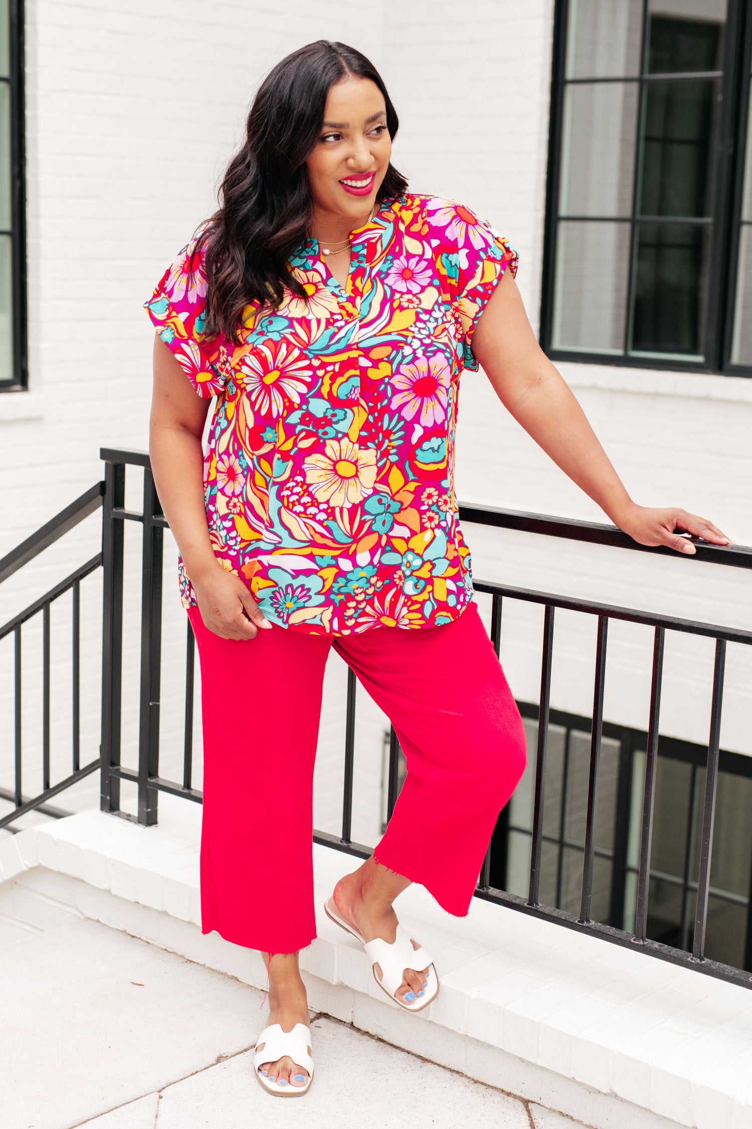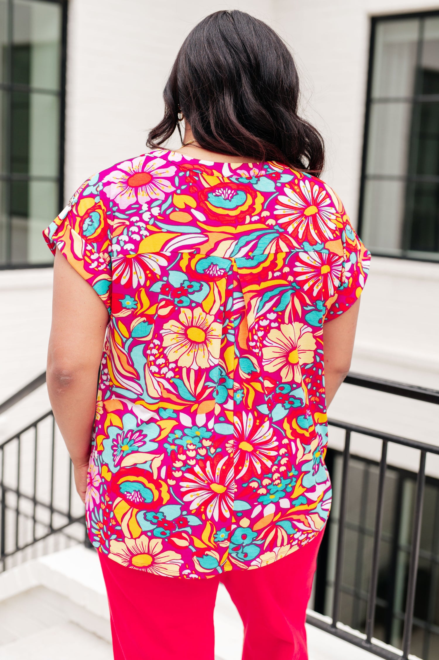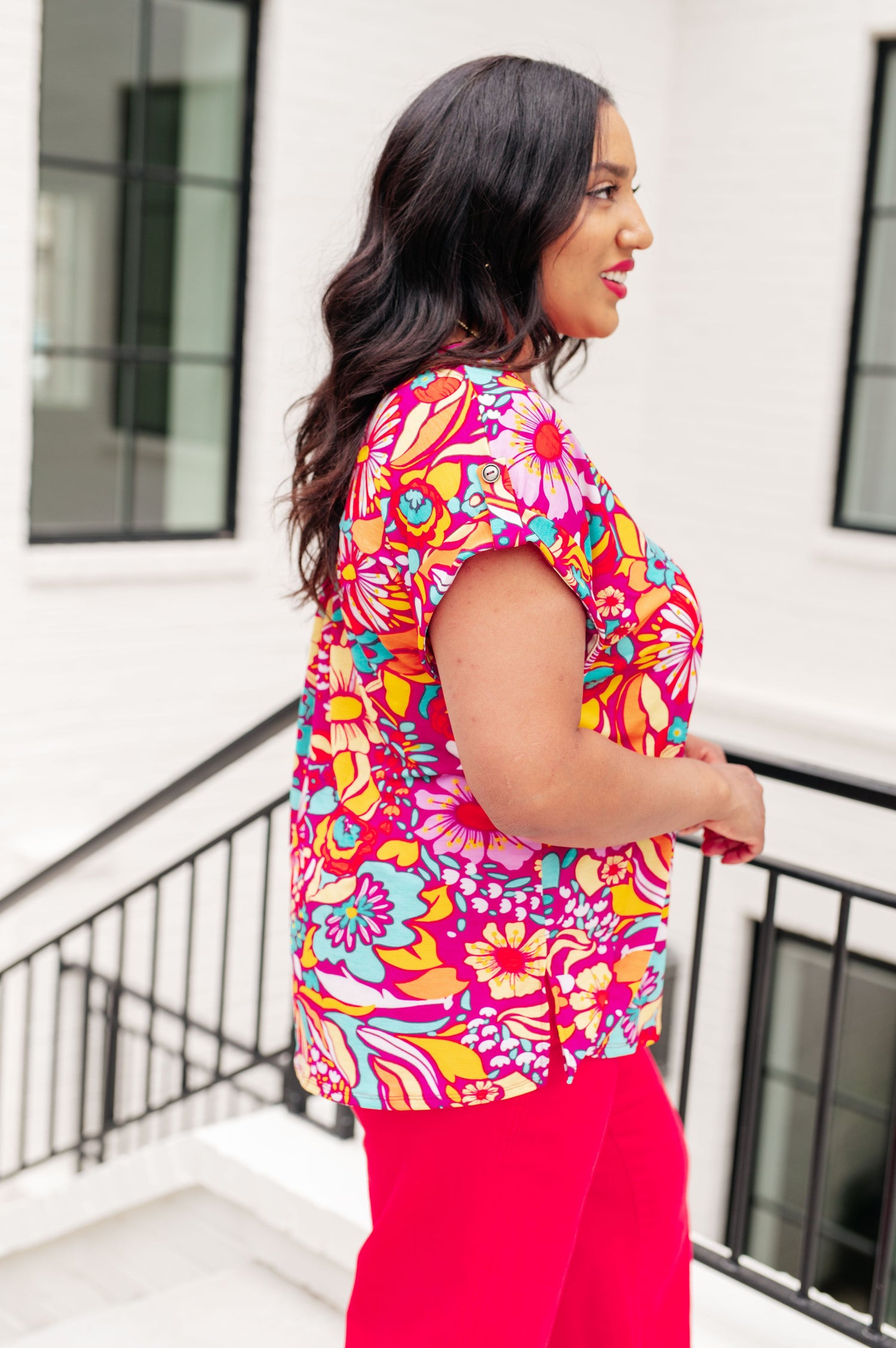 Lizzy Cap Sleeve Top Magenta and Pink Multi Floral