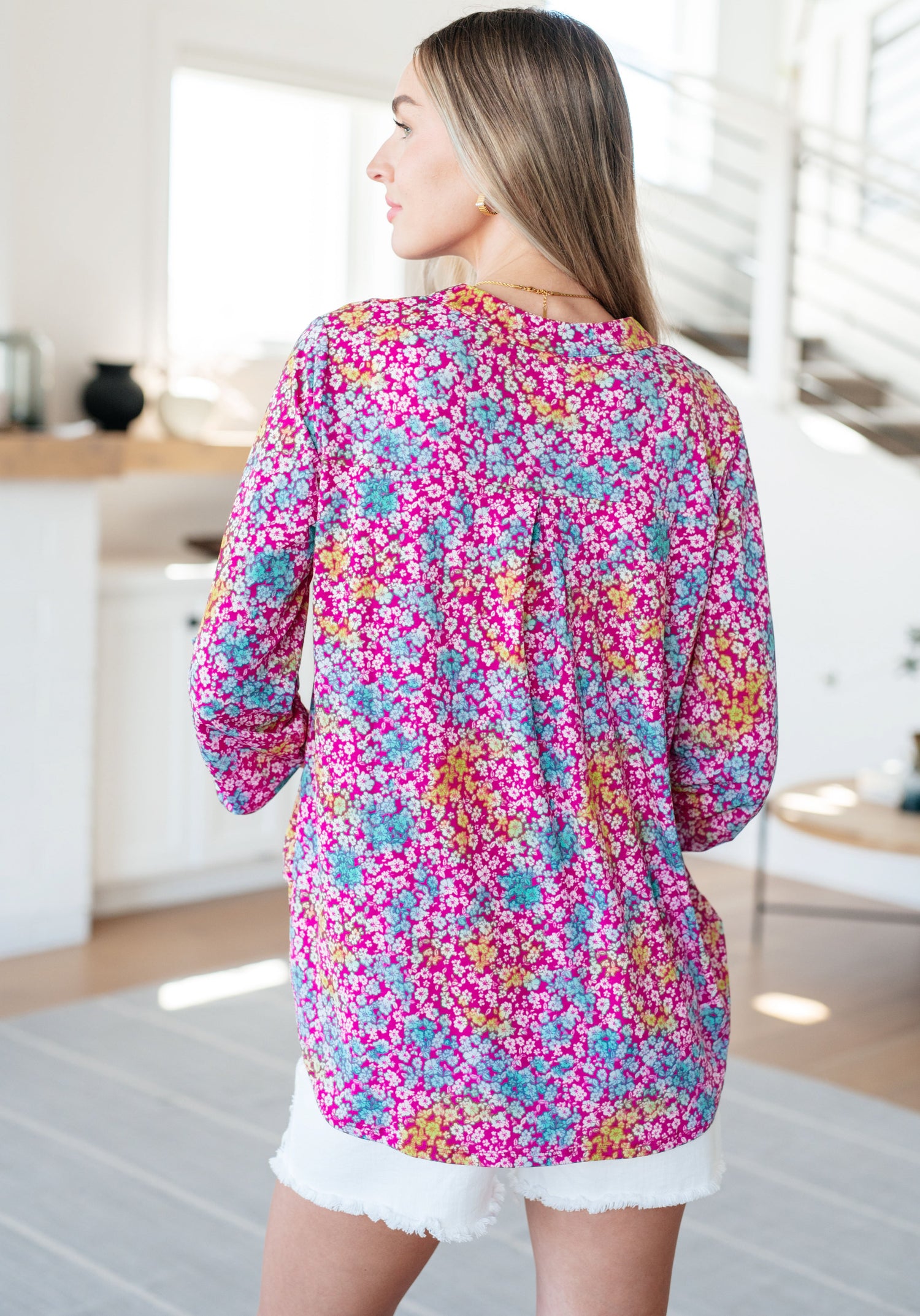 Lizzy Top in Pink and Aqua Ditsy Floral