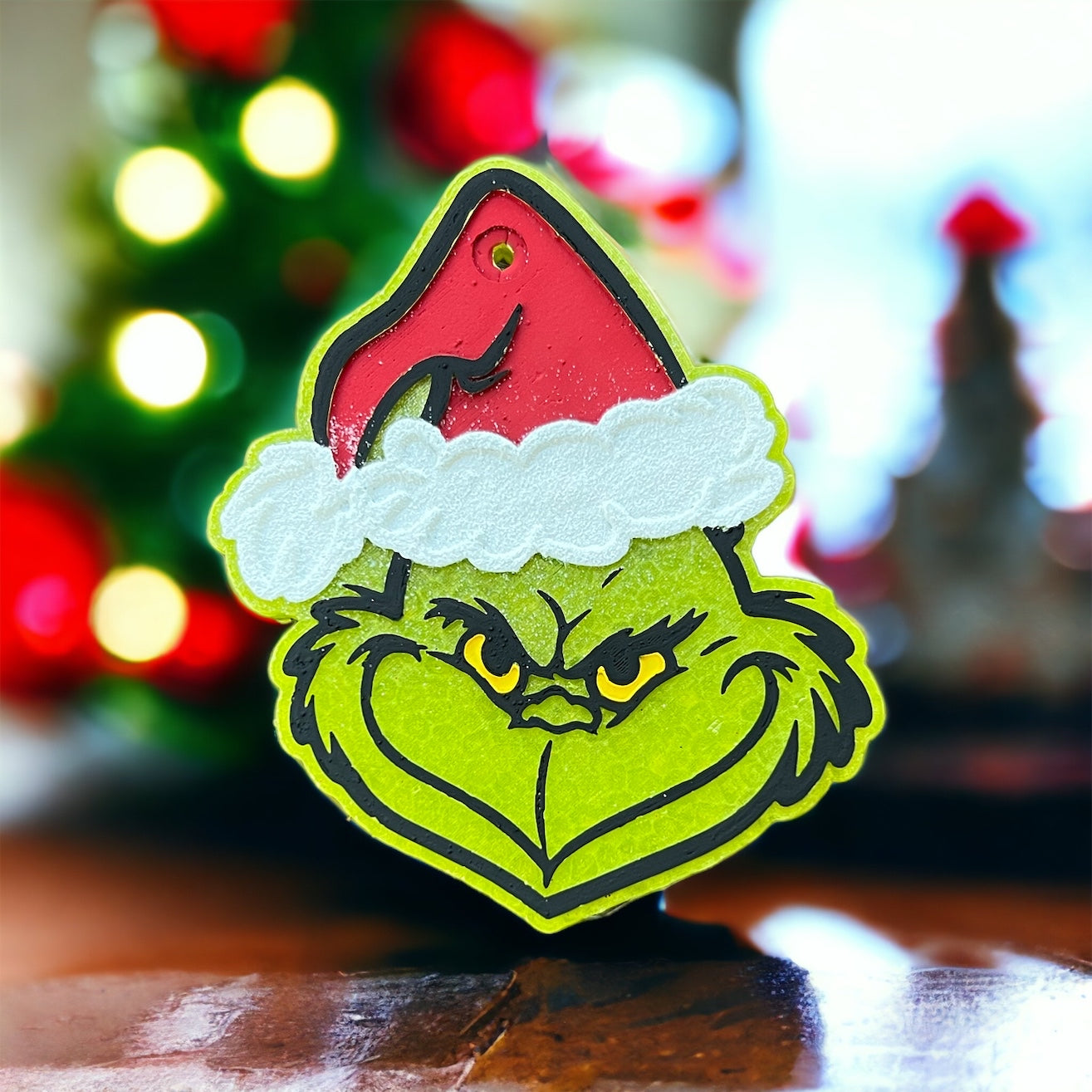 Welcome to the holiday season with Mean One Freshie! This fun design features a mischievous green guy ready to stir up some holiday shenanigans. Guaranteed to add a bit of fun to your holiday!