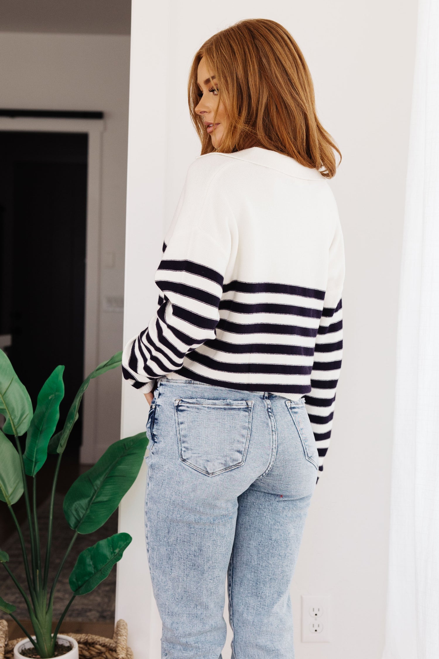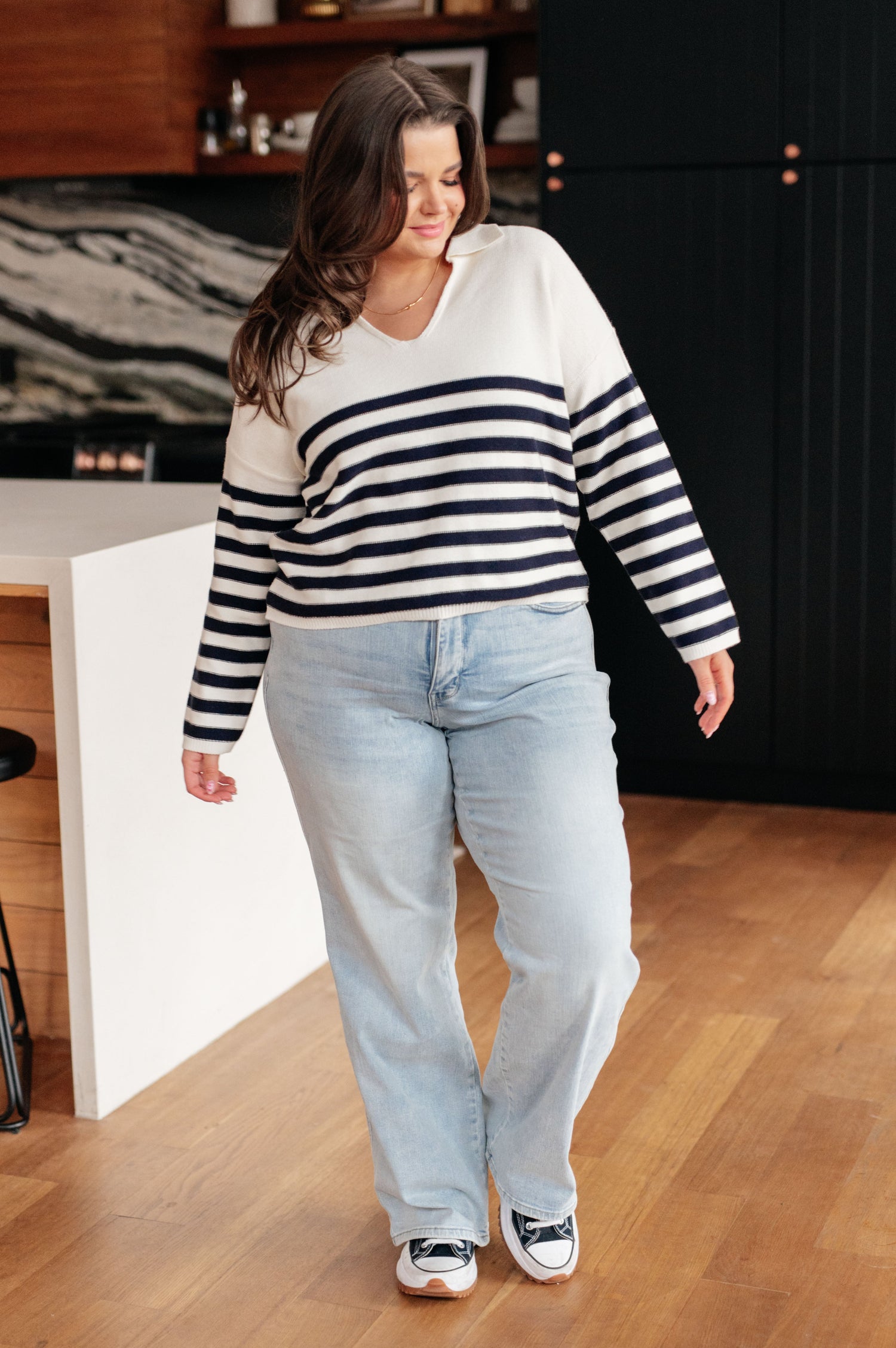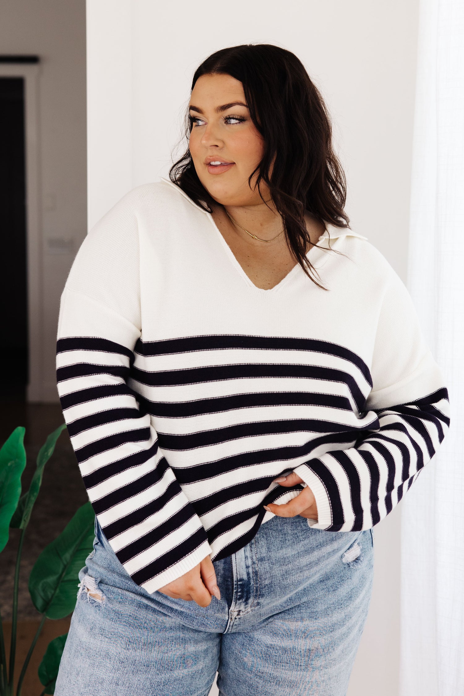 Wrap yourself up in cozy style with the Memorable Moment Striped Sweater! Featuring a modern collared V-neckline and stripes along the lower half, this soft sweater knit offers a relaxed fit that makes it the perfect updated classic! Could this be your most memorable moment yet?