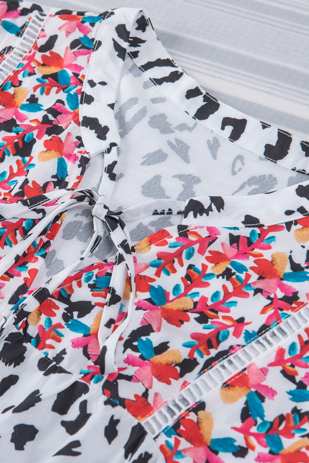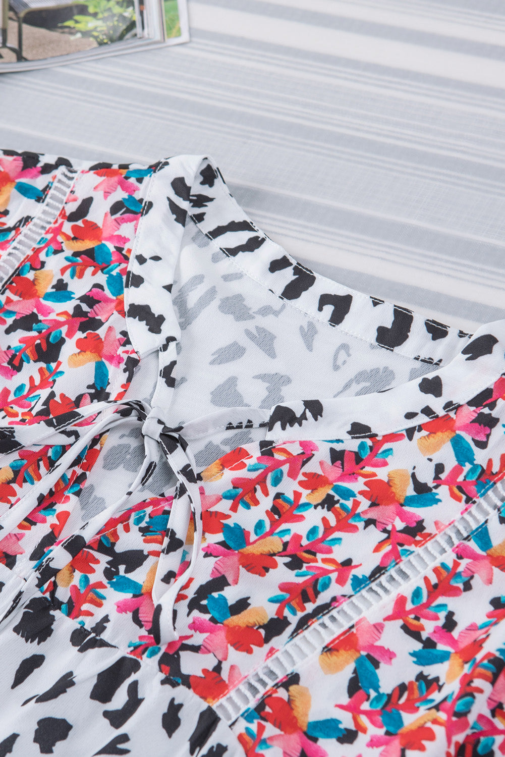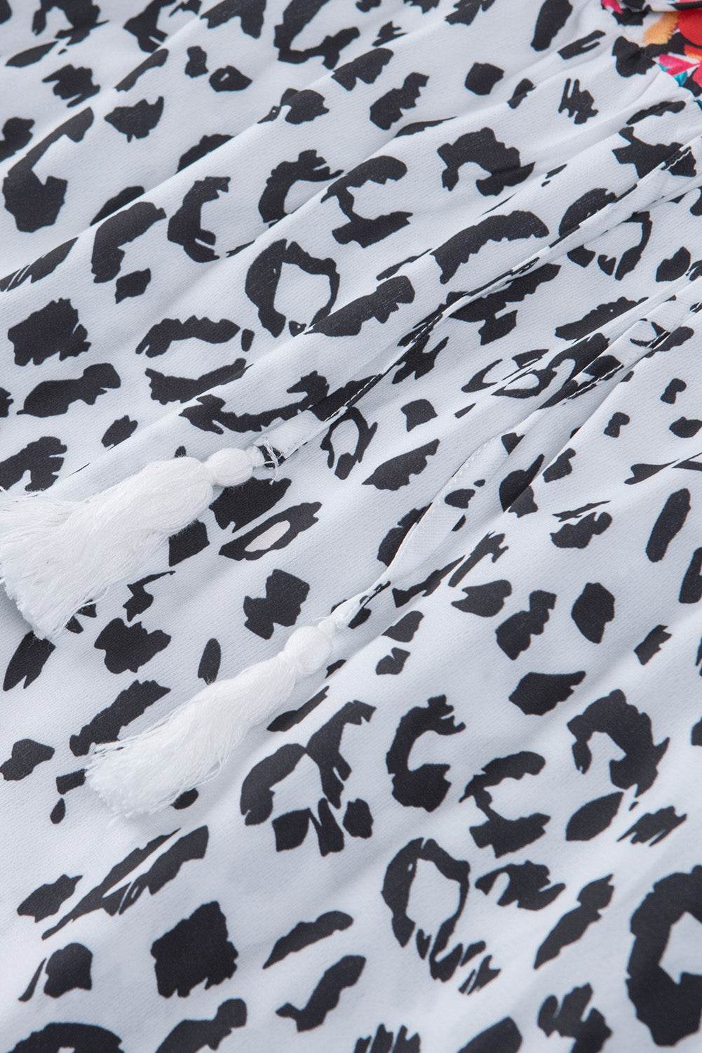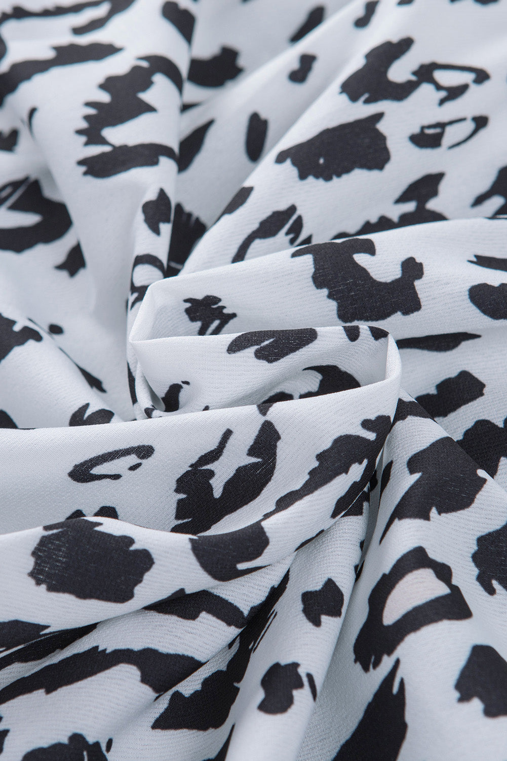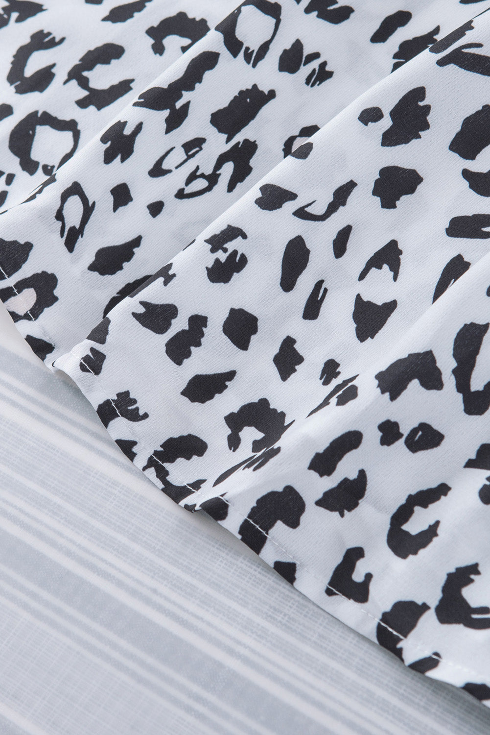 - It features a V-neck, short sleeves, chic leopard print, and a shift fit