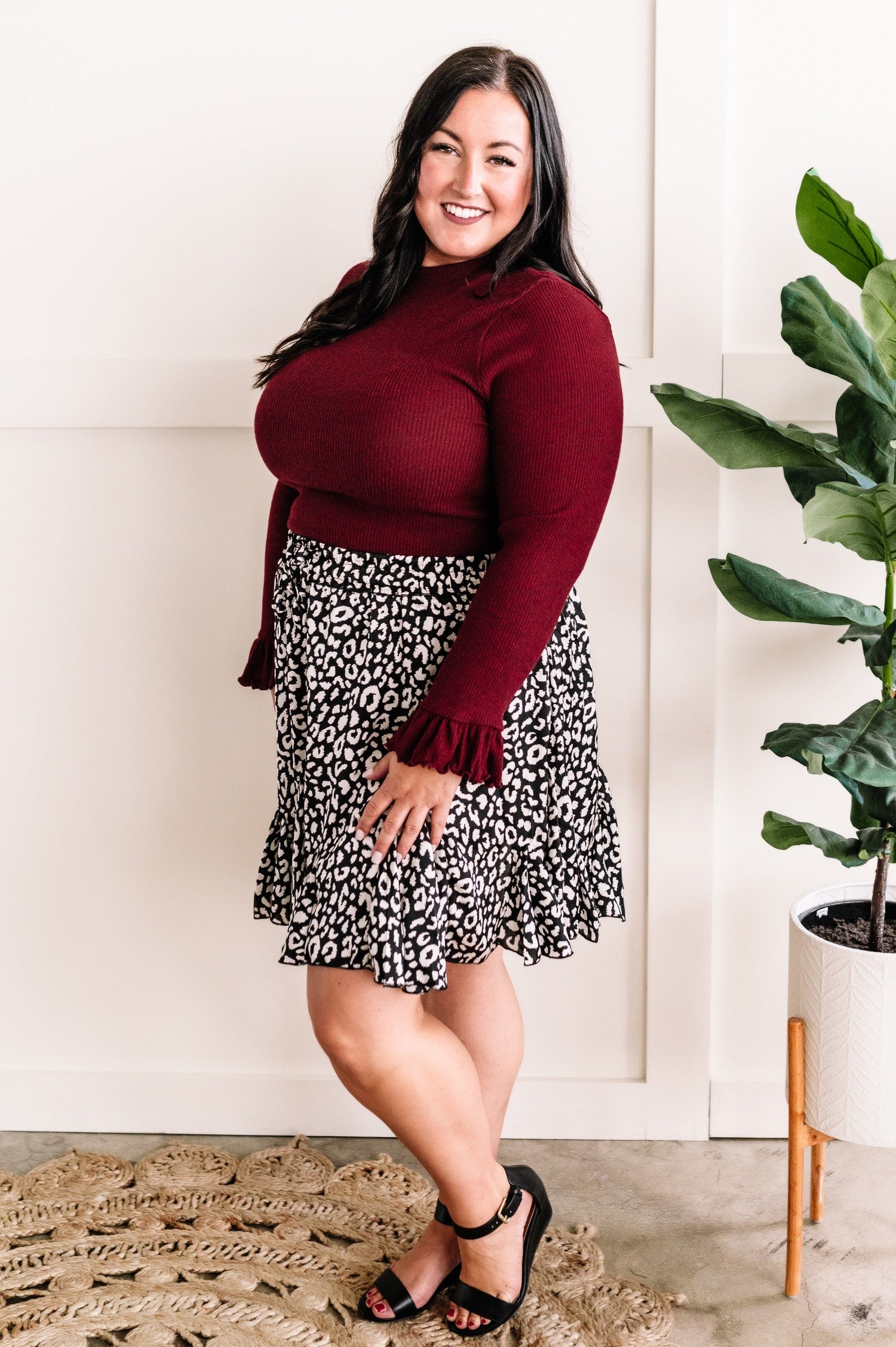 - Ruffled sleeves and hemline