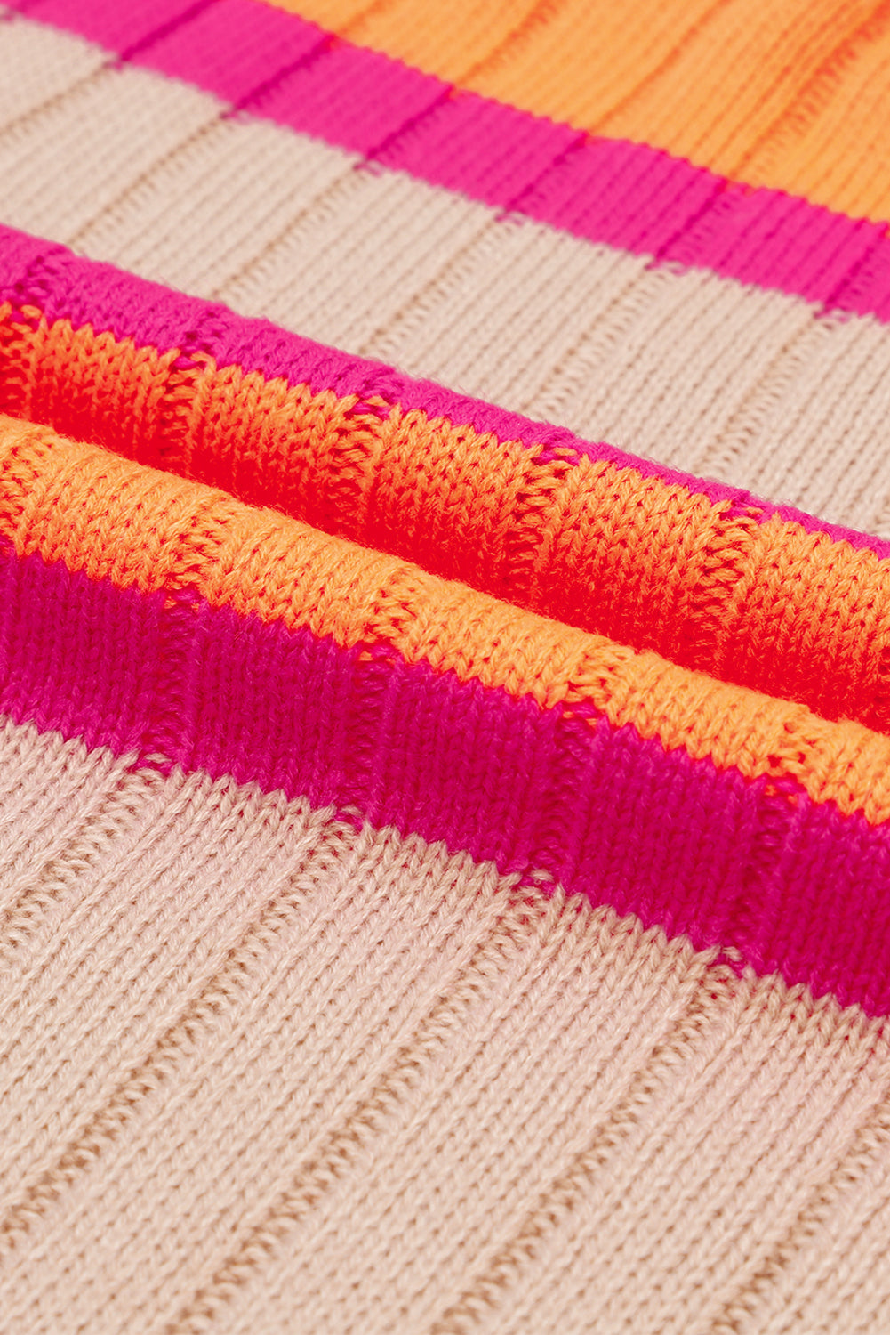 Orange Striped Colorblock Drop Shoulder Slouchy Cardigan