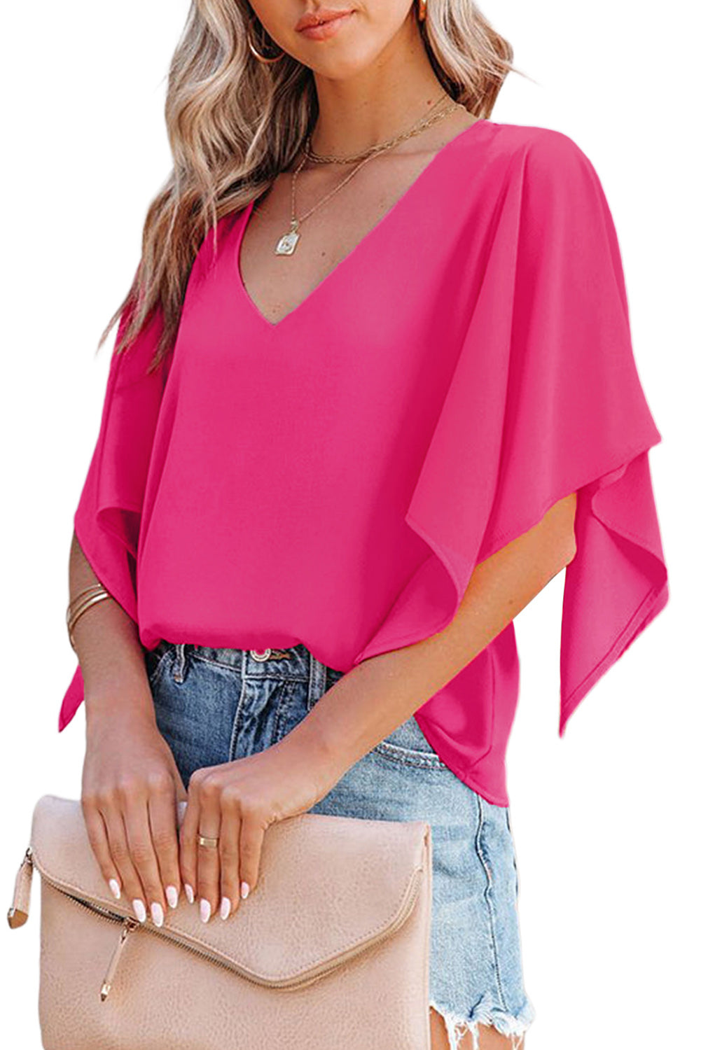 - The distinctive bell sleeves are the highlight of this blouse, and the solid color design also keeps this piece on the trend