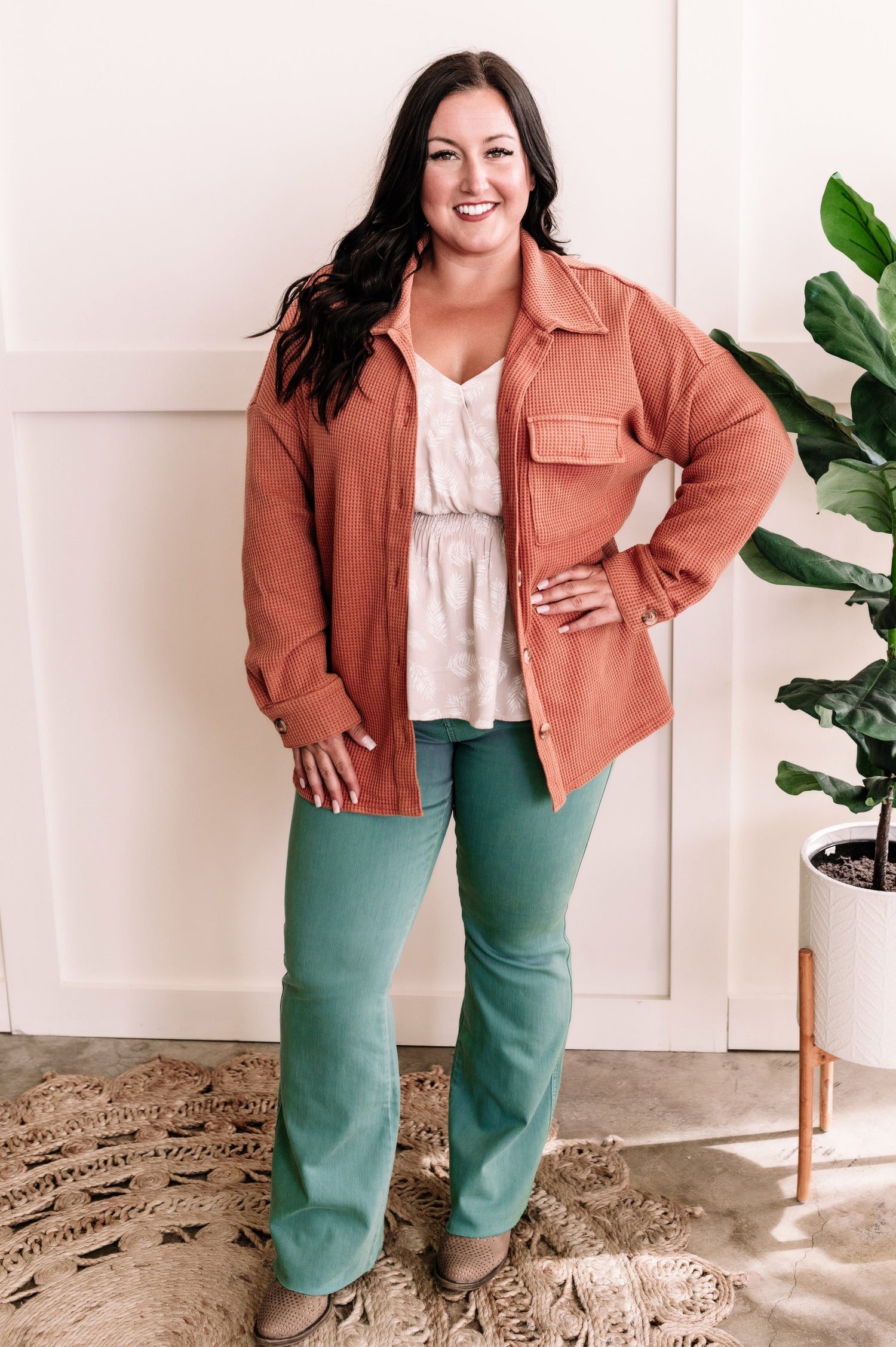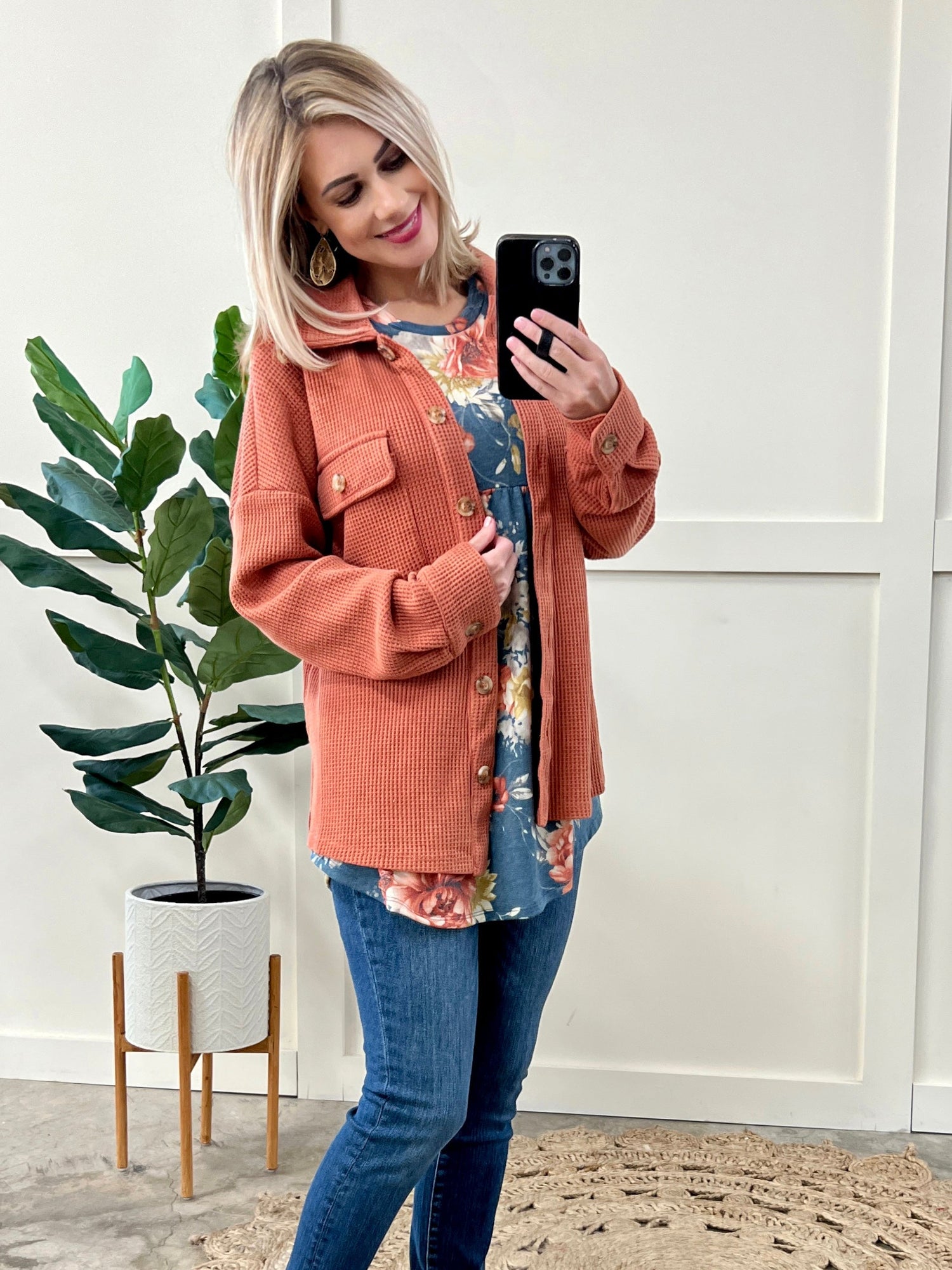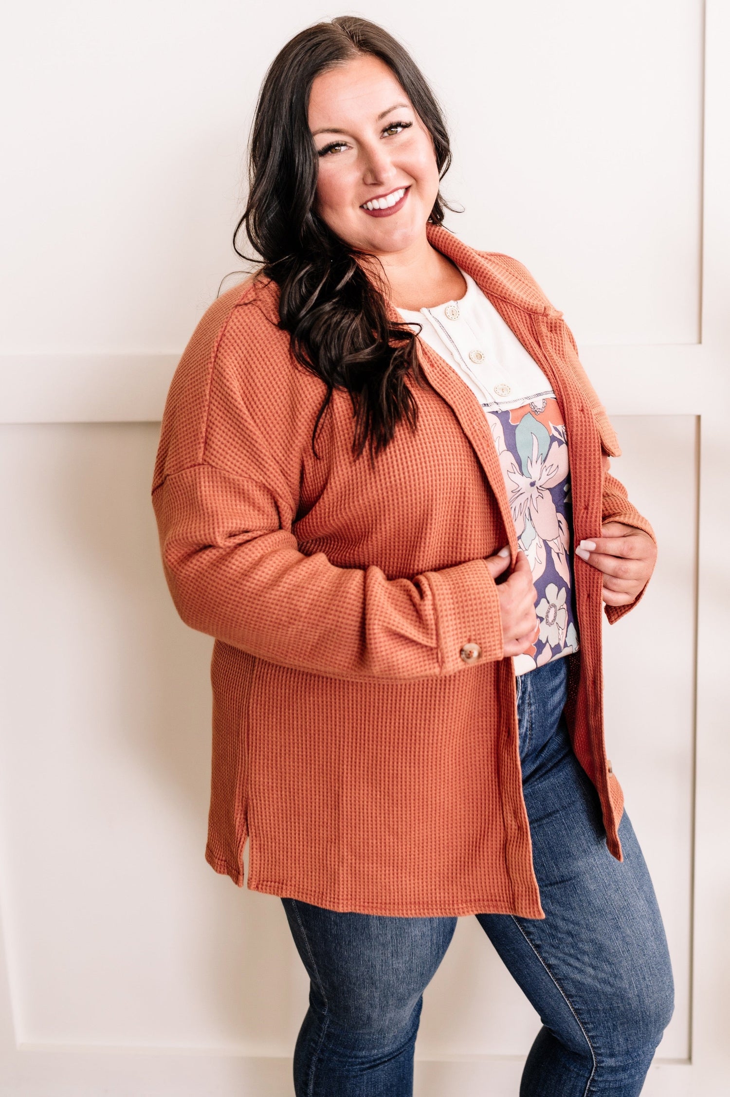 Pull Yourself Together Waffle Knit Shacket In Autumn