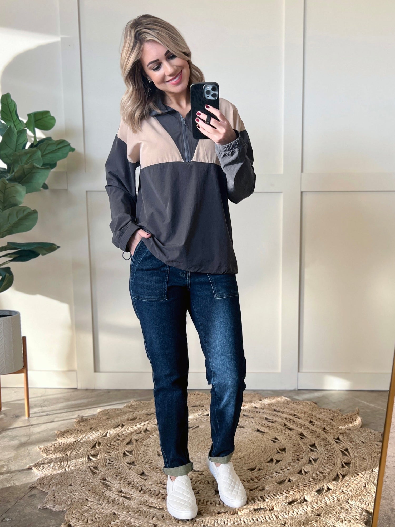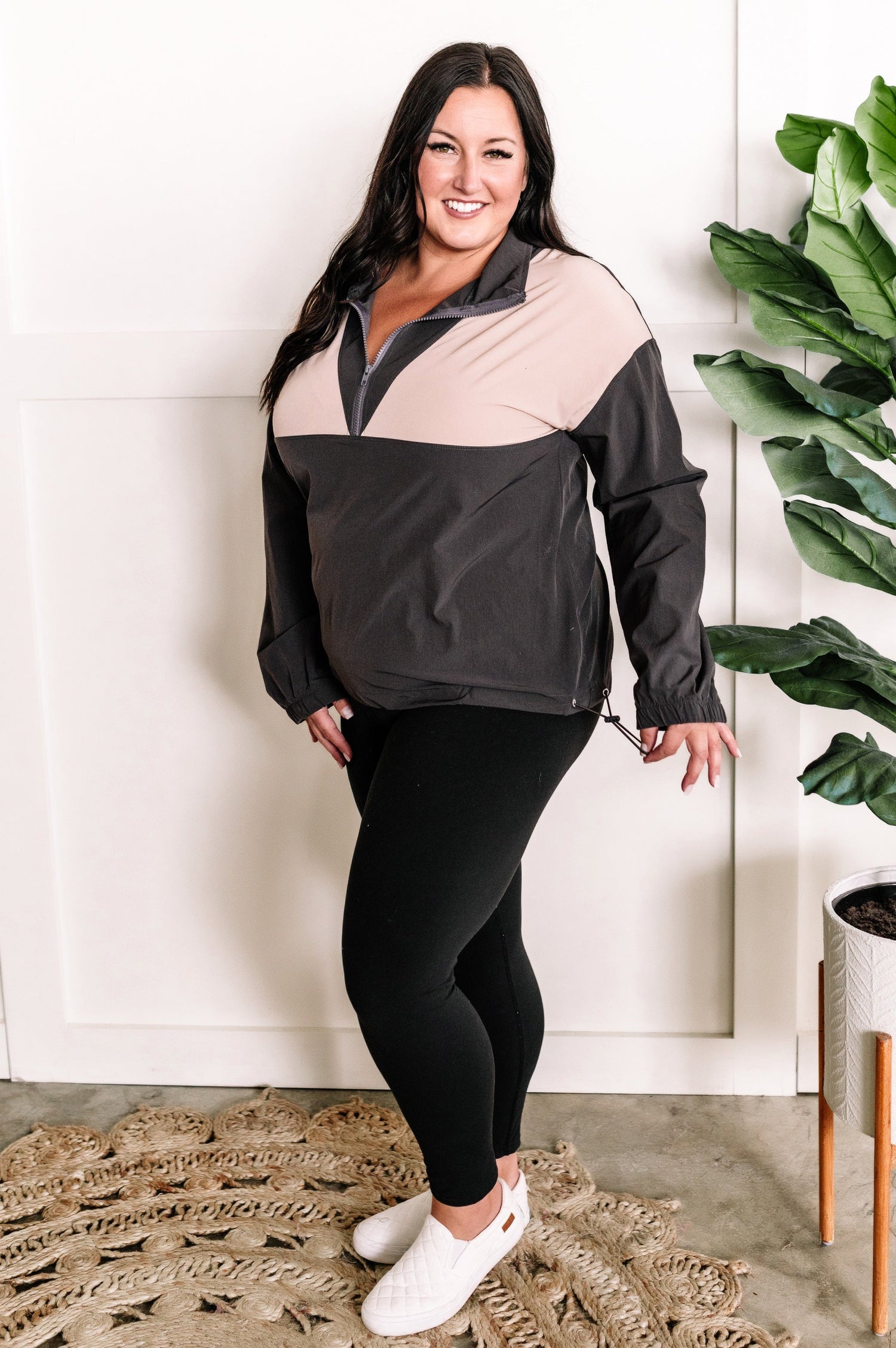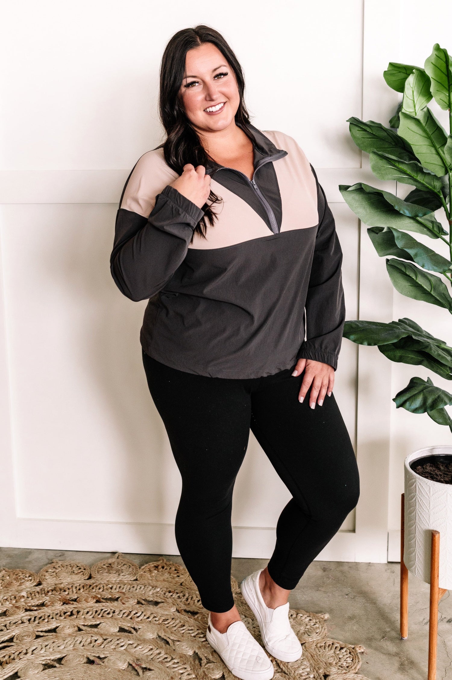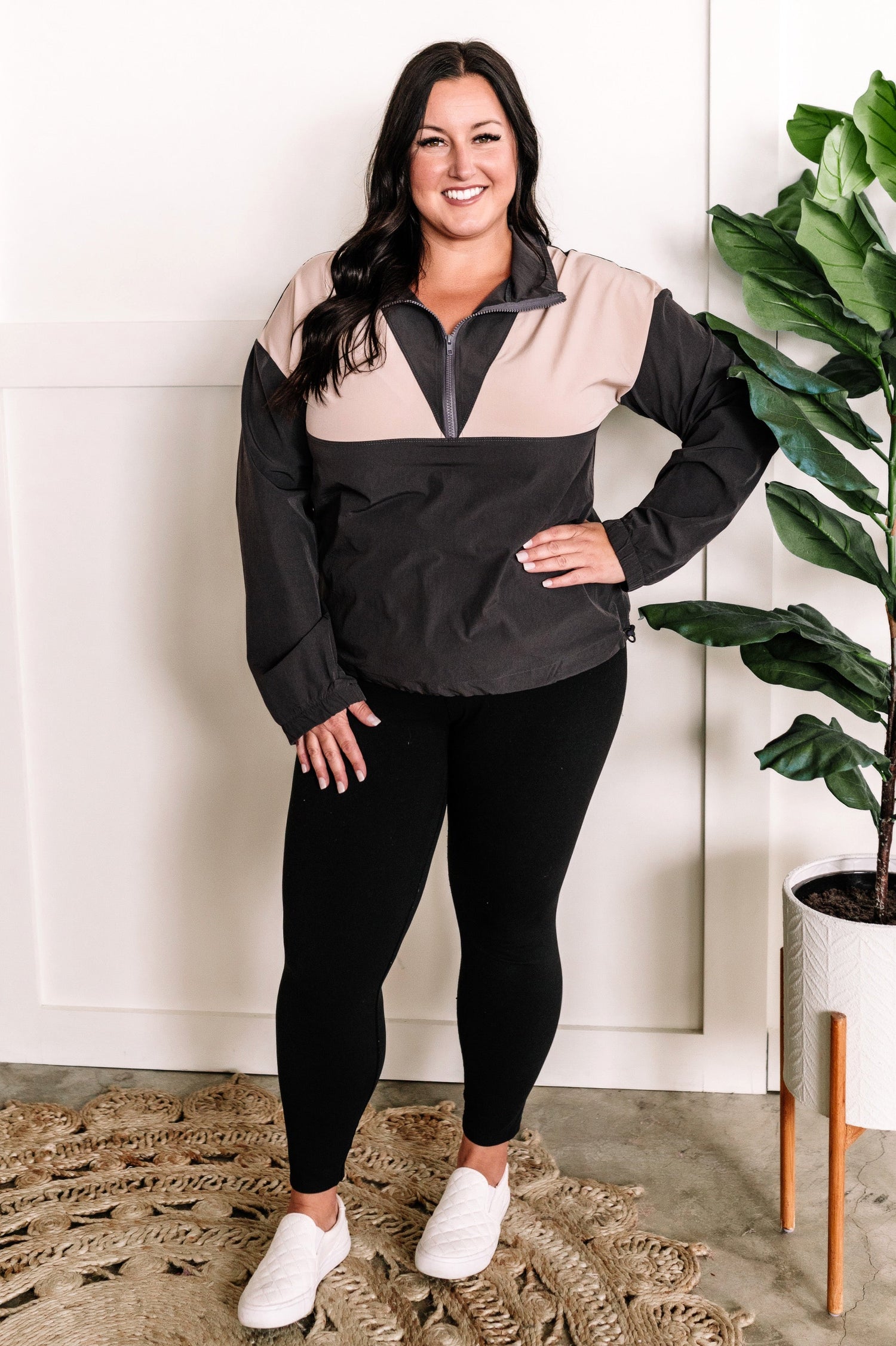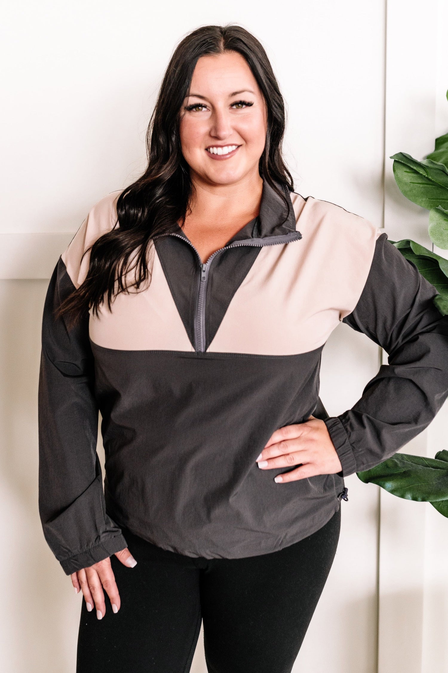 Quarter Zip Athletic Pullover In Grey & Taupe