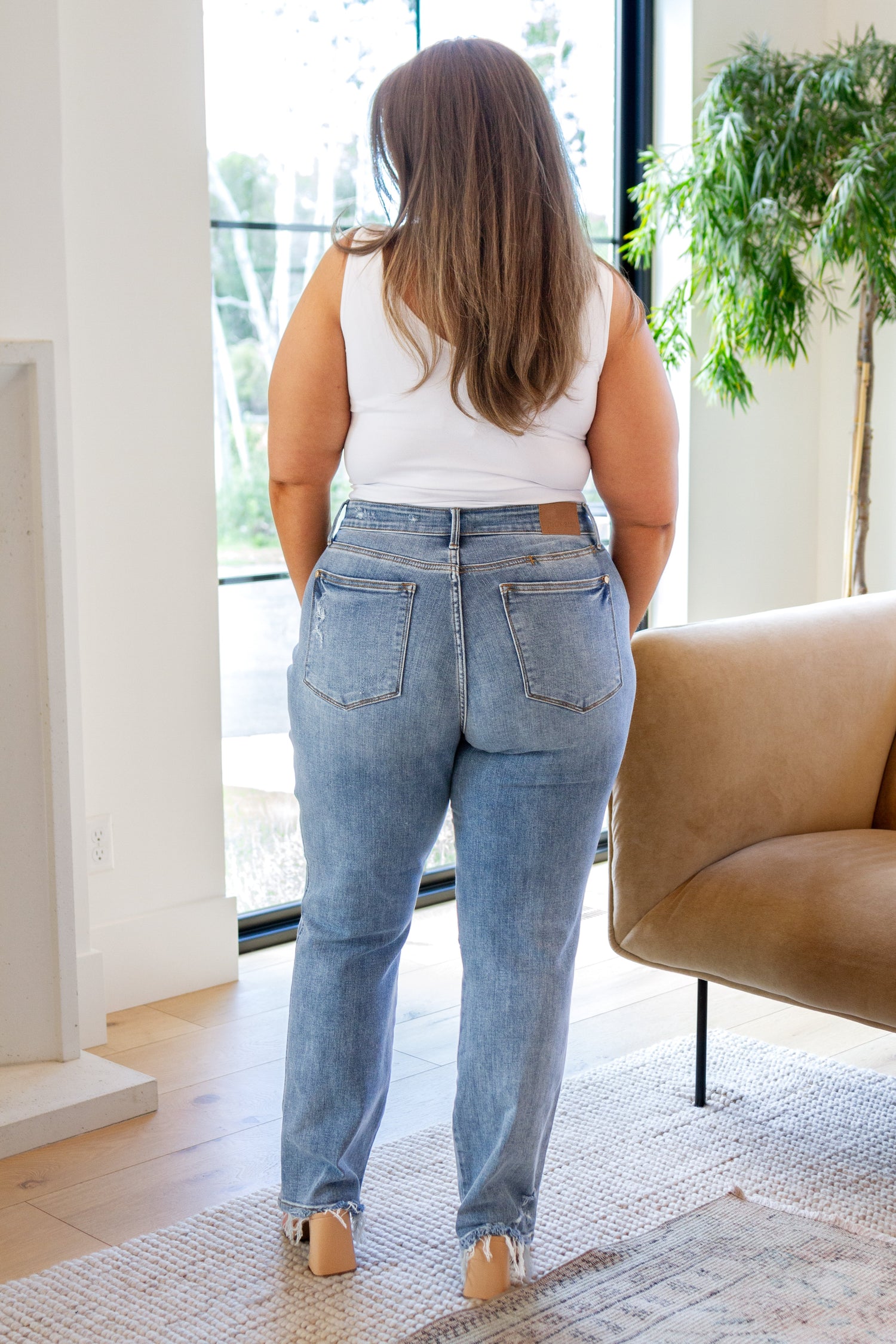 The Quinn Mid Rise Cell Phone Pocket Dad Jeans from Judy Blue are perfect for on-the-go lifestyles! You can now keep your phone in a secure pocket without compromising comfort. With a mid rise, light wash, and straight cut, this timeless style is sure to become your new favorite. So why wait? Get your Quinn jeans today!