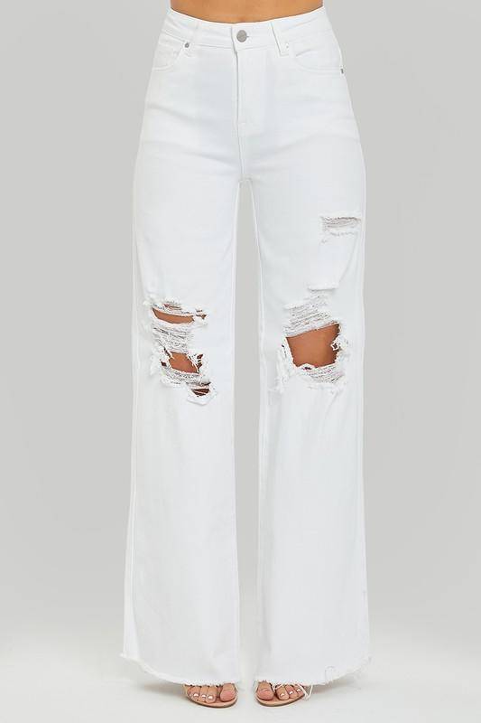 Risen High Rise Distressed Wide Leg Dad Jeans