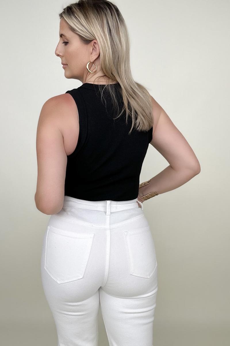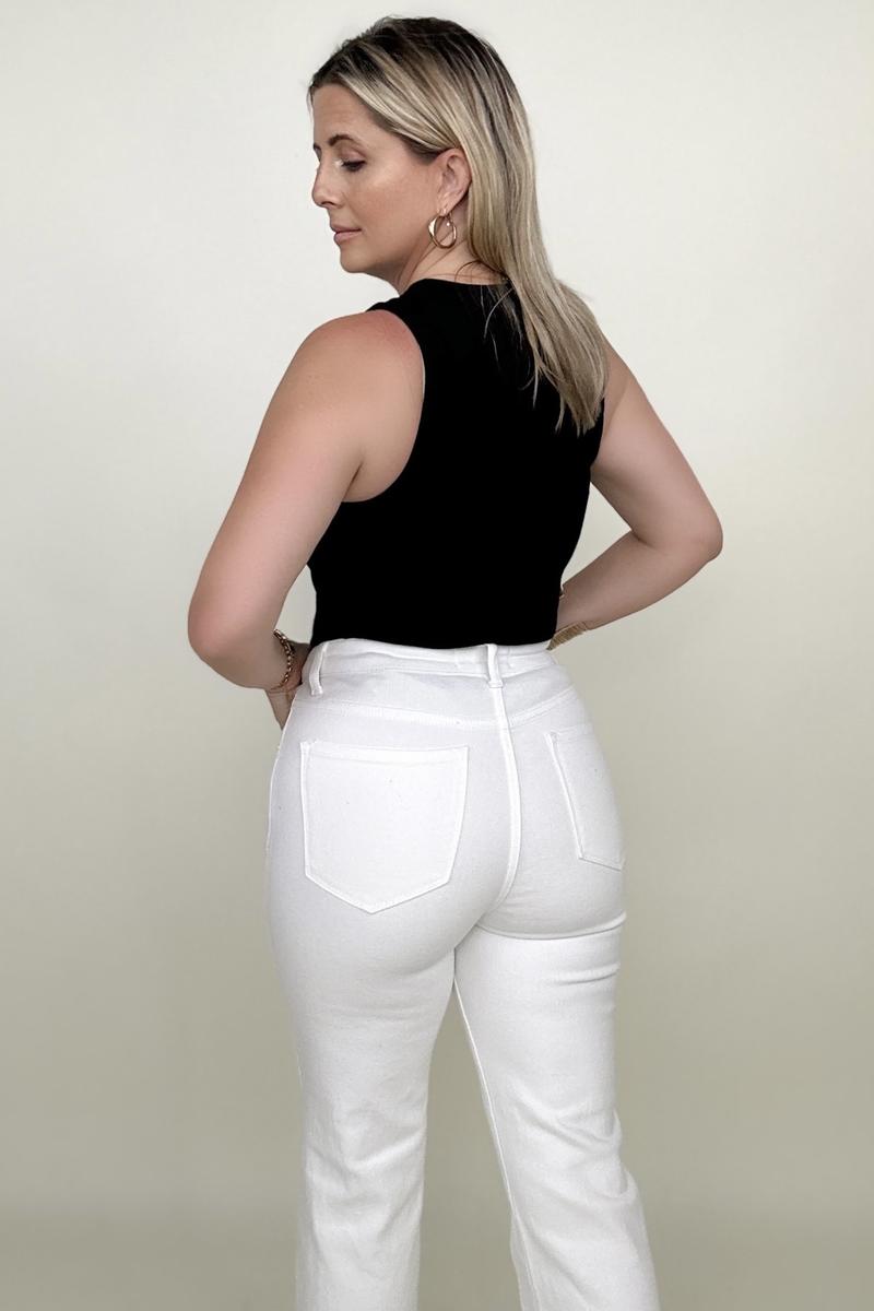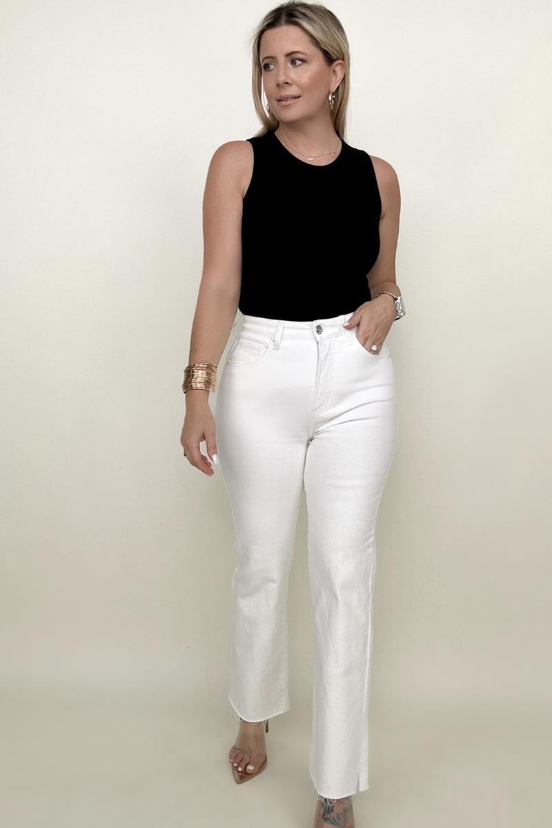 Risen High Rise Tummy Control Raw Hem Side Slit Straight Jeans