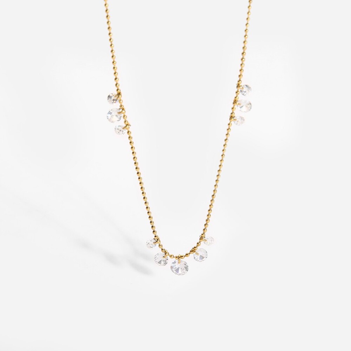 New Colors - Stainless Steel 18K Gold Plated Zirconia Charm Necklace (With Box)