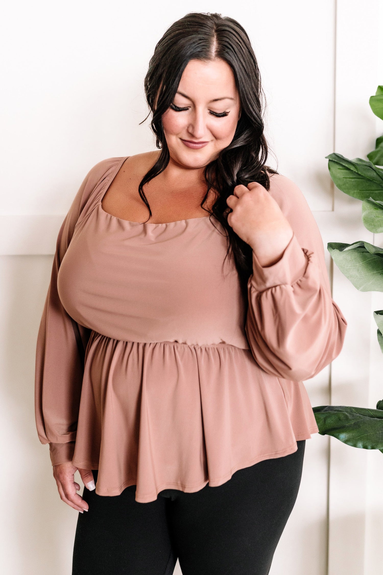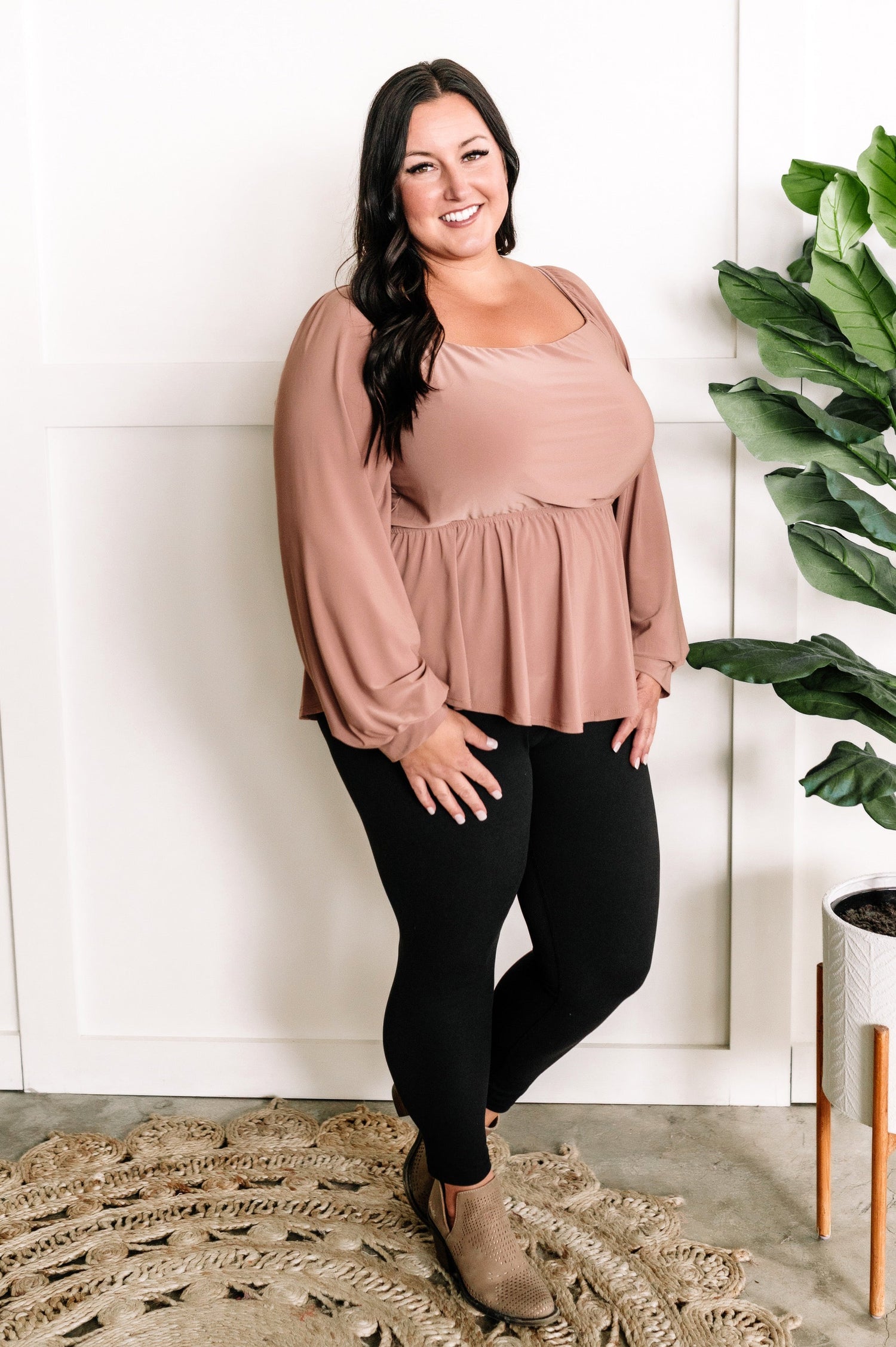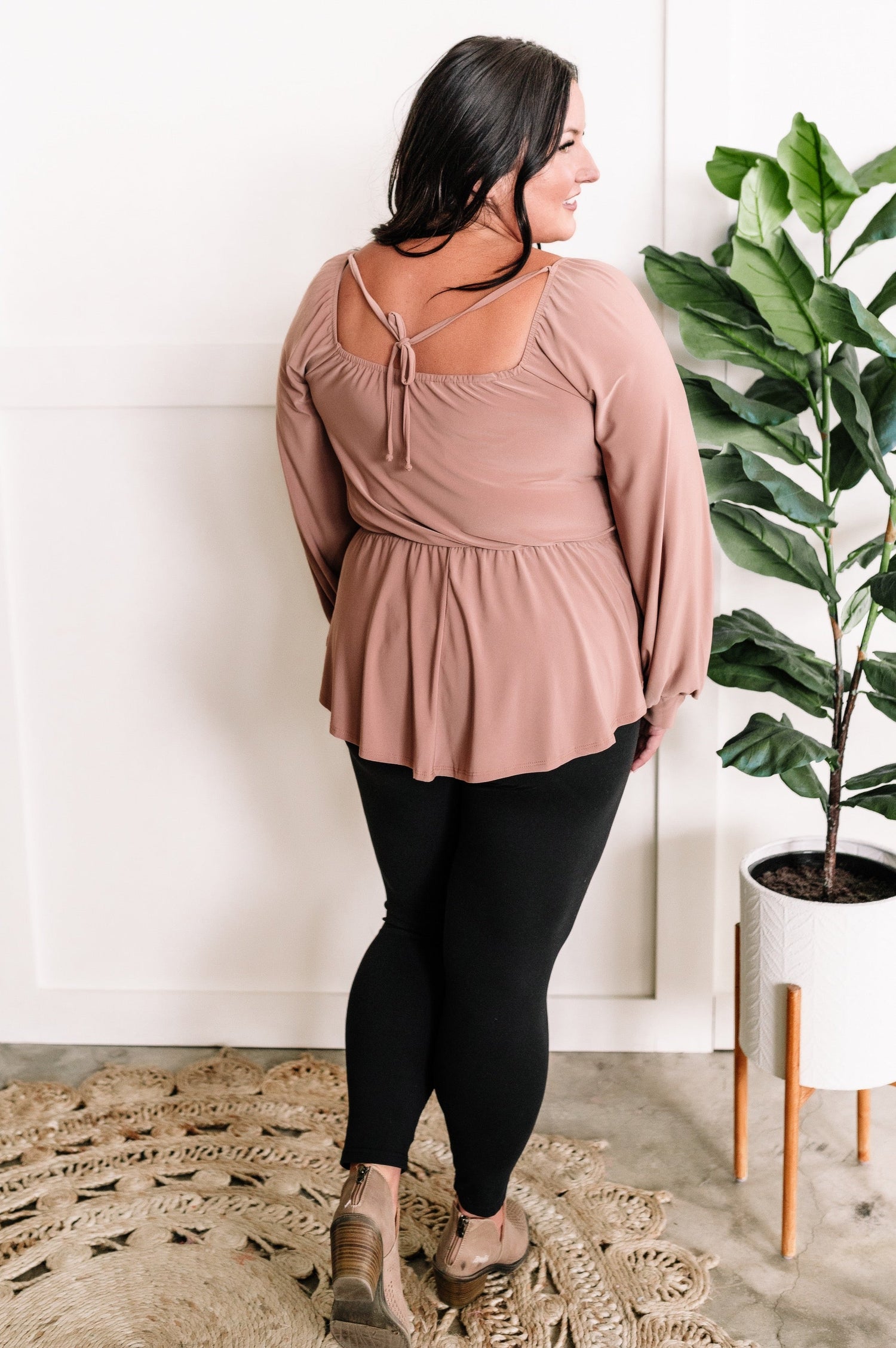 Stretchy Square Neckline Top With Tie Back Detail In Beige