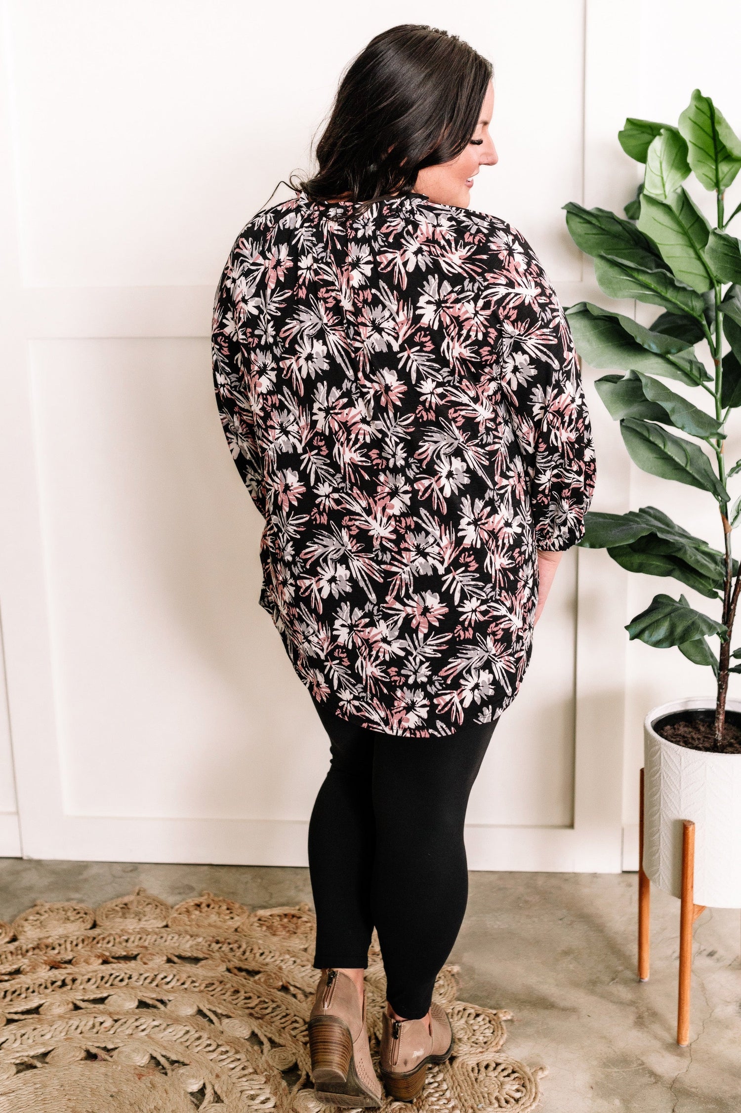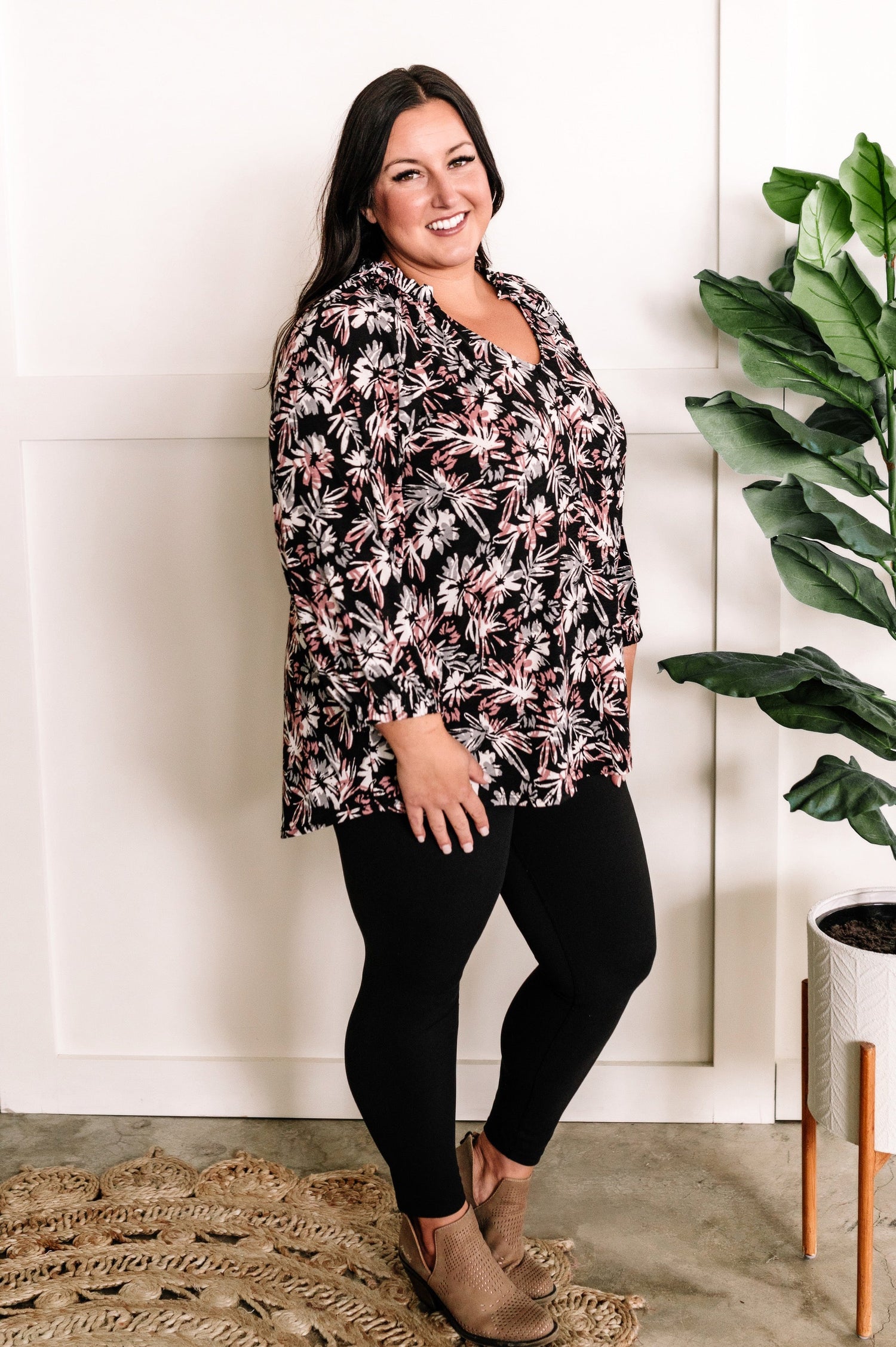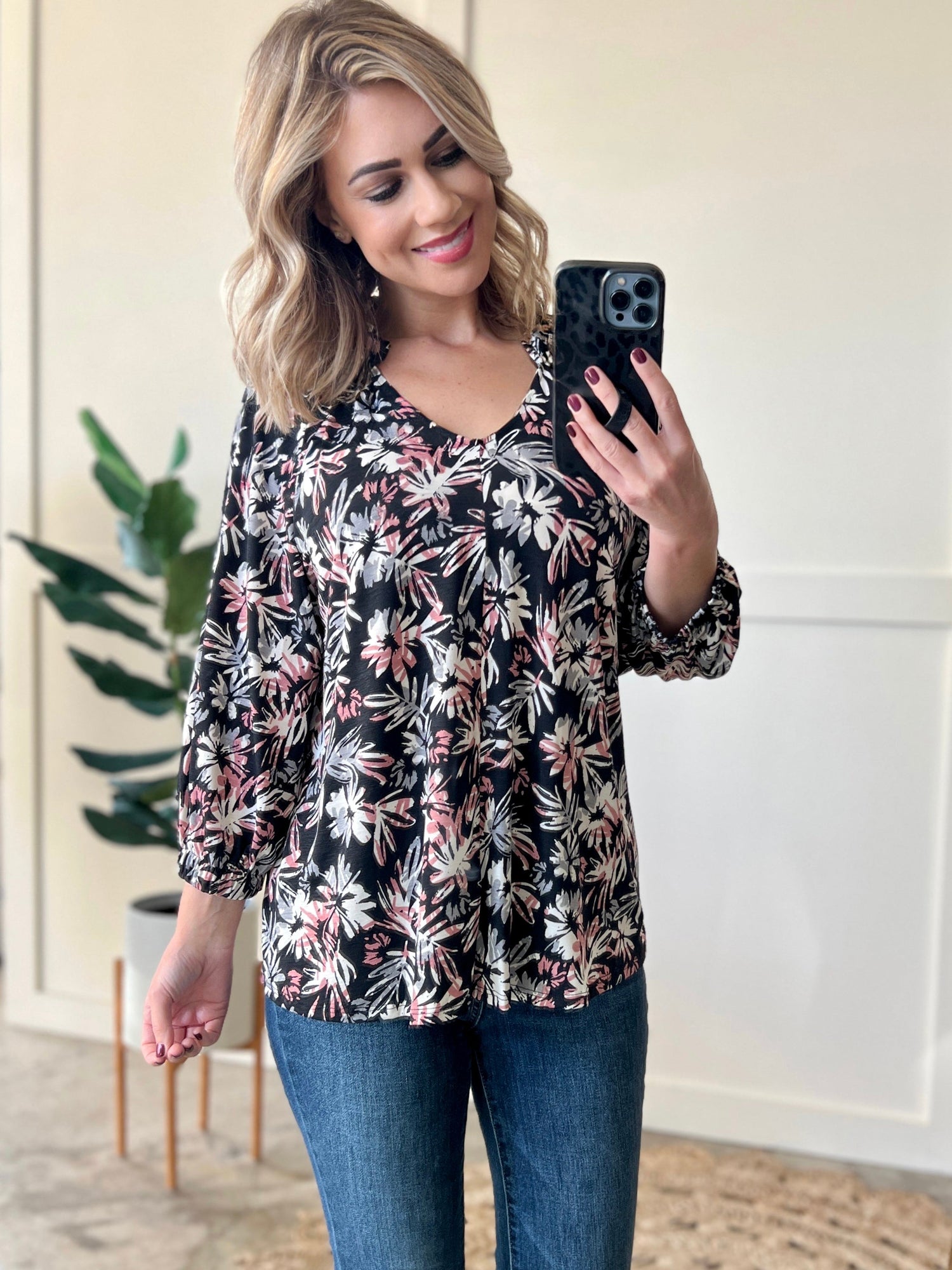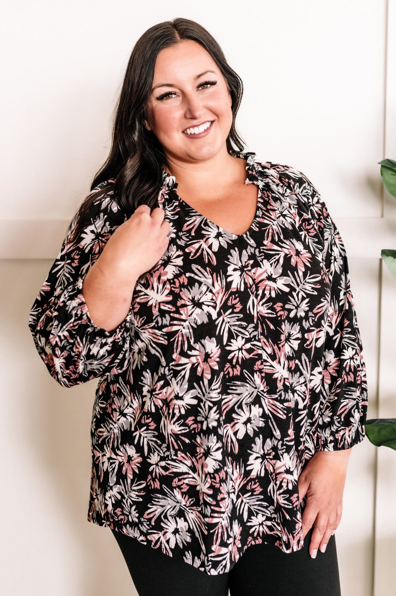 V Neck Blouse With Ruffle Detail In Abstract Florals