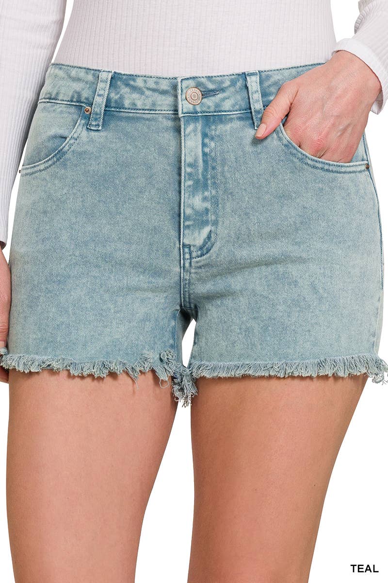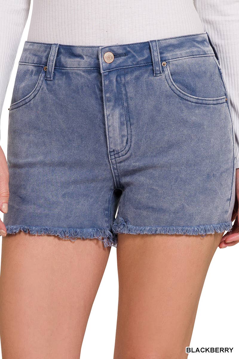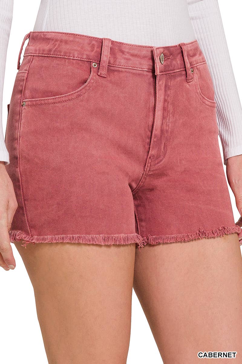 Vanilla Monkey - Washed Frayed Cutoff Hem Shorts: 1-2-2-1 (S-M-L-XL) / MAUVE