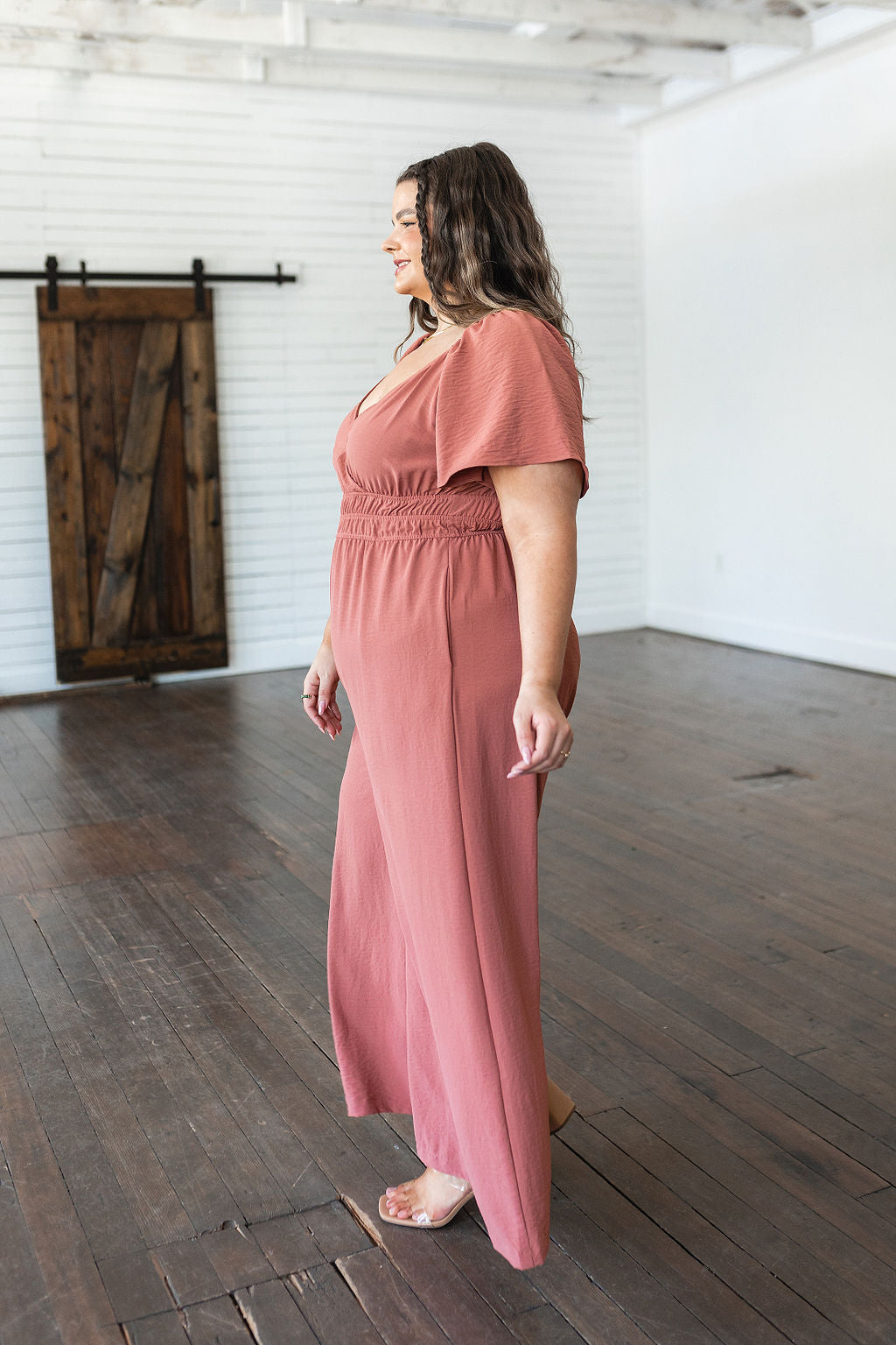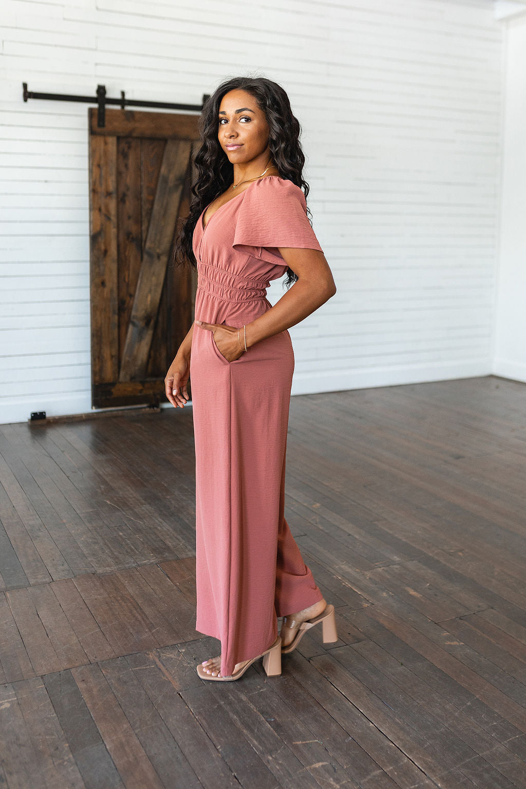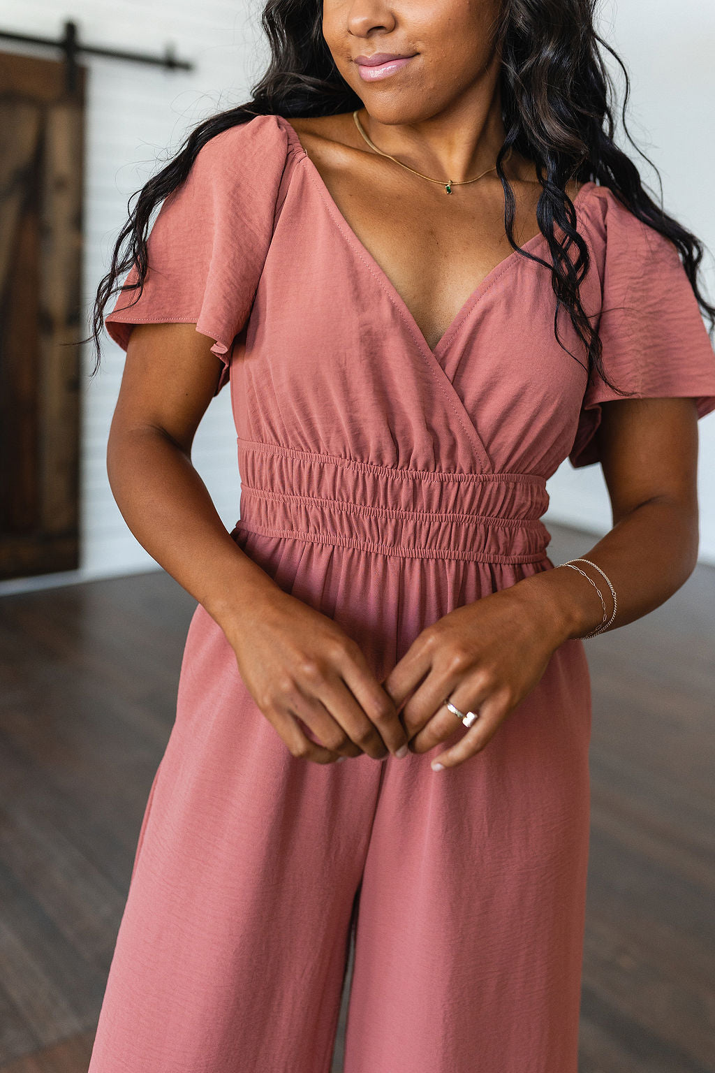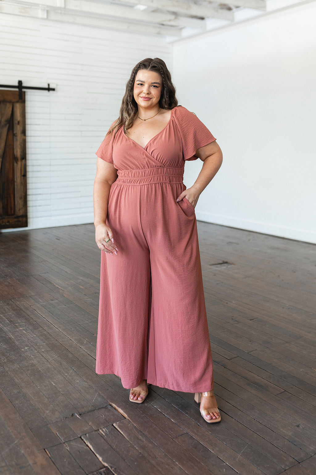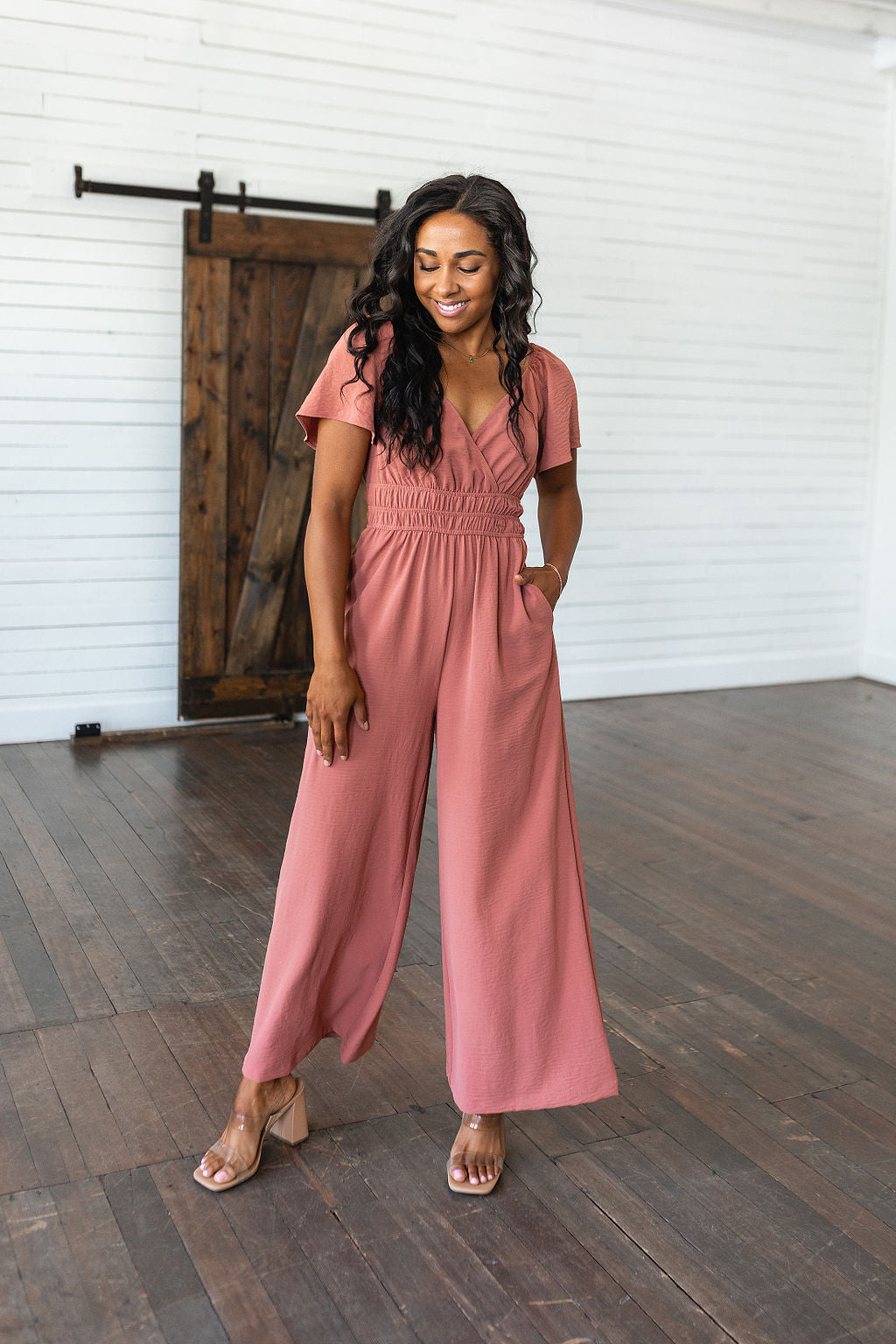 Elevate your look with the Wandering Valley Wide Leg Jumpsuit! Crafted with a lightweight crinkle woven fabric, this stylish jumpsuit features a gorgeous v-neckline, a flattering cased elastic waistband, and sleek, wide leg pants with pockets for added convenience. Step out in style and confidence!
