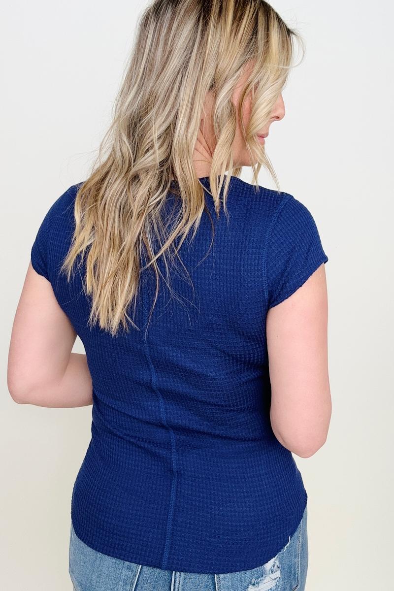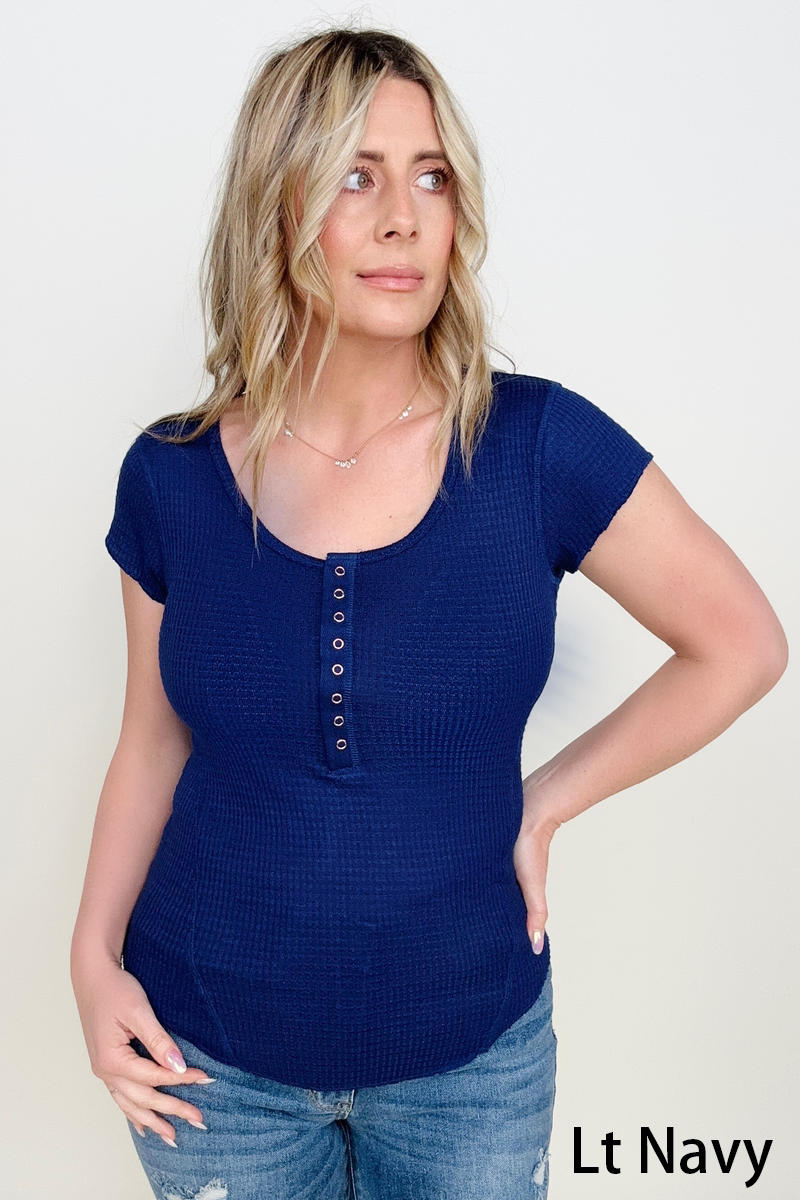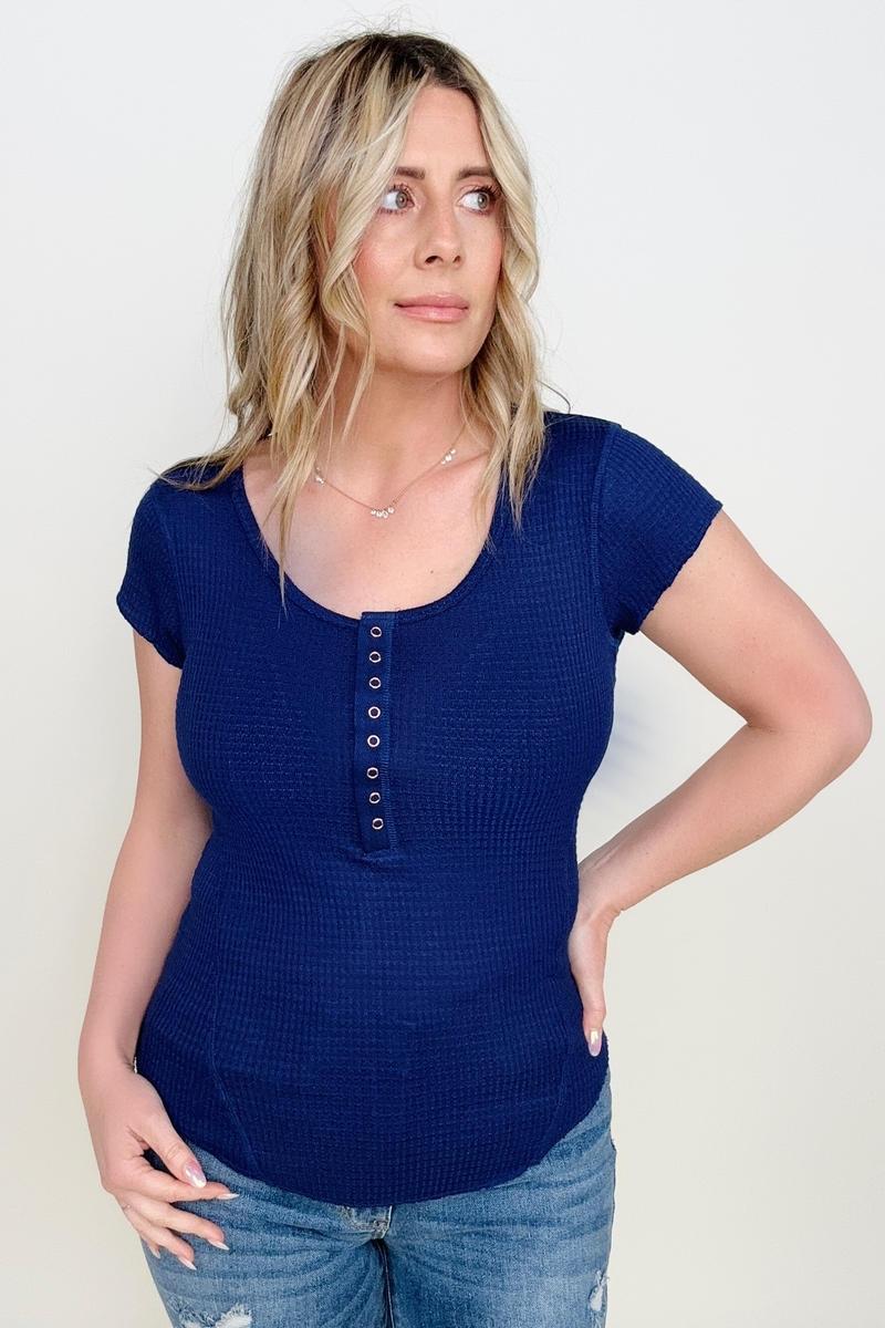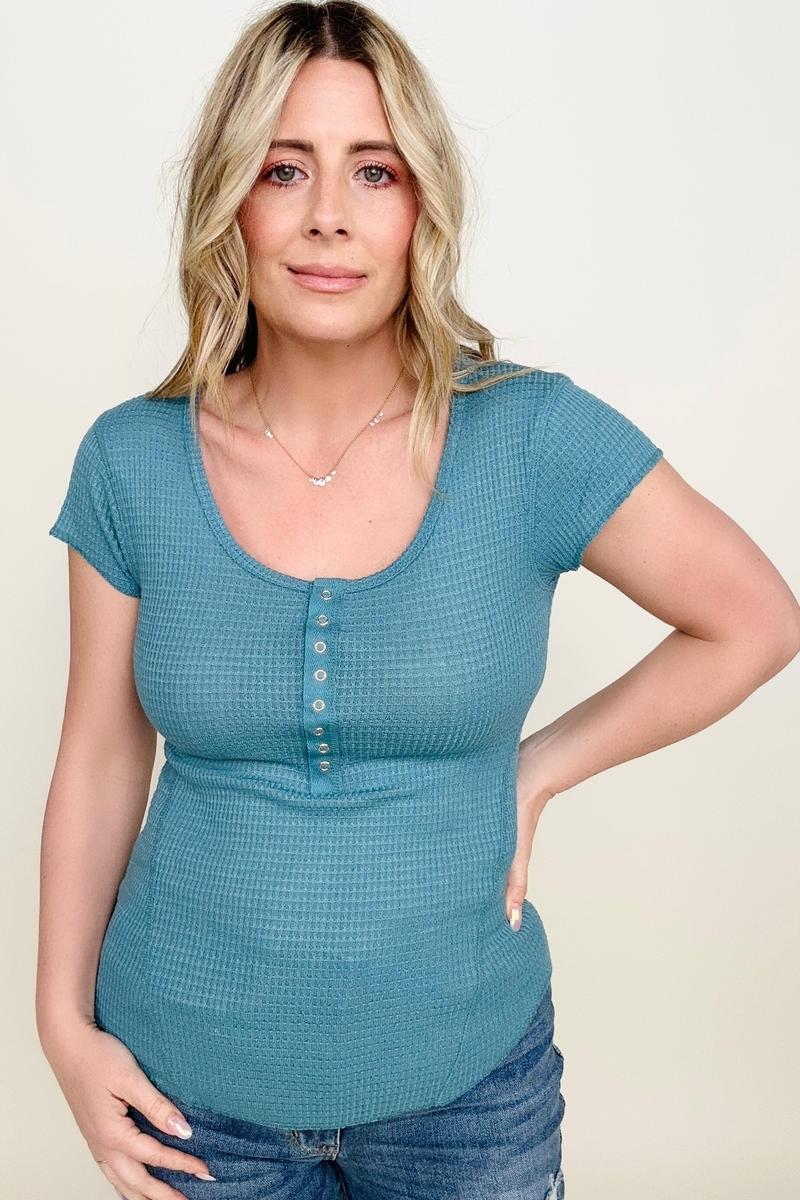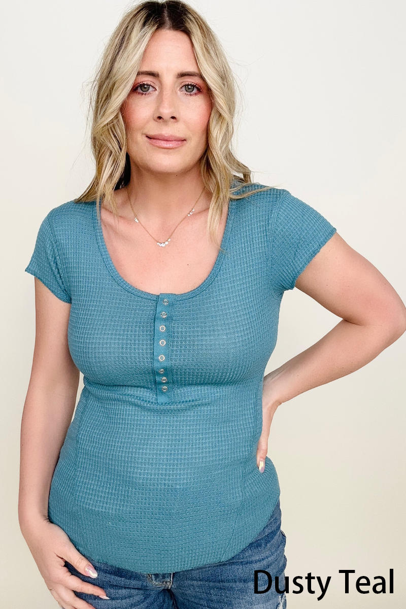 Zenana Baby Waffle Snap Button Cap Sleeve Top